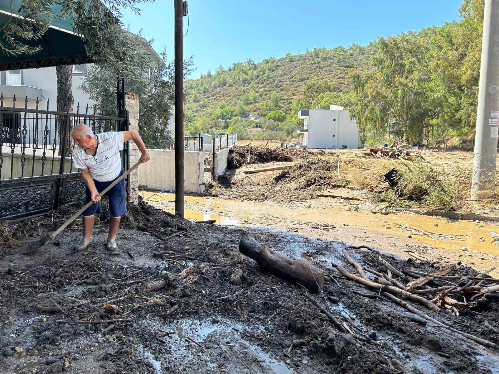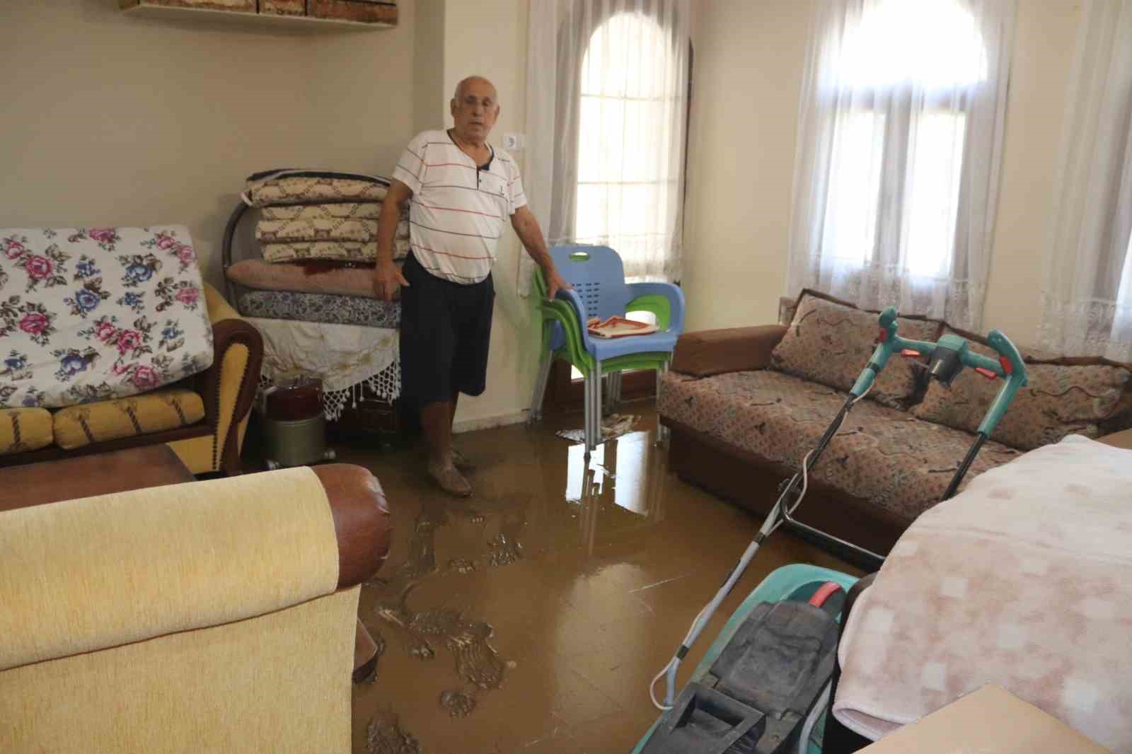 Evini su basan mahalle sakini Sait Tangör, “Ben Manisa’da yaşıyorum. Komşular bizi aradı ve ‘sel geldi, evinizin içi ve bahçeyi su bastı’ dediler. Geldik ve gördük. Evimiz çok berbat olmuş. Çok büyük zararımız var. En az 300 bin TL civarında zararımız var. Ben de kürekle çamurları temizlemeye çalışıyorum” ifadelerine yer verdi.