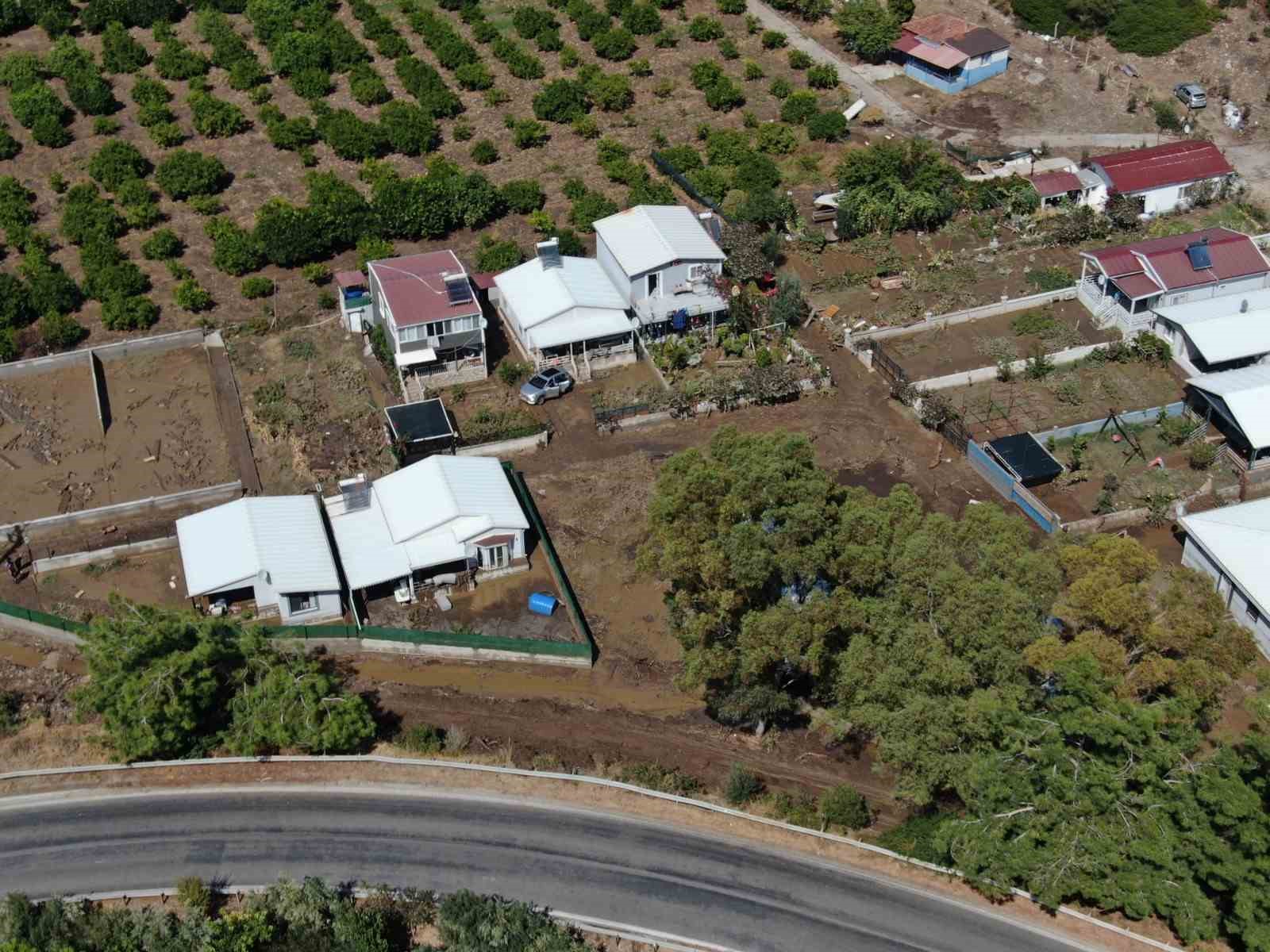 Öte yandan Menderes ilçesi Ahmetbeyli Mahallesi Maydonoz Koyu’nda derenin taşması sonucu bazı ev ve iş yerlerini su bastı. Park halindeki bazı araçlar denize doğru sürüklendi. Dere üzerinde bulunan tekneler ise sele kapıldı.