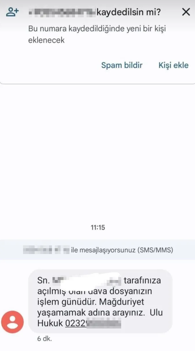 Sabah uyandığında telefonda yaklaşık 50-60 adet cevapsız arama olduğunu fark eden Avukat Yasin Ulu, “Aramaların neyle ilgili olduğunu anlamak için geri dönüş yaptığımda, bir dolandırıcılık şebekesinin hukuk büromuzun adını kullanarak insanları kandırmaya çalıştığını öğrendik. ‘Ulu Hukuk’ adıyla gönderilen mesajlarda, sözde ceza davası ya da icra takibinin son ödeme günü olduğu, ödeme yapılmazsa ciddi sonuçlarla karşılaşılacağı belirtiliyor ve mesajın altında yer alan numaranın aranması isteniyor. İnternetten gerçek telefon numaramı bulup beni arayan vatandaşlara bunun bizimle hiçbir ilgisi olmadığını, sadece ismimizin kullanıldığını özellikle söylüyorum. Ancak buna rağmen inananlar da oluyor. Bazı vatandaşlara link gönderildiğini, bu linke tıklandığında e-Devlet sitesine çok benzeyen, ancak sahte olan bir sayfa açıldığını öğrendik. Bu sahte sitede adım adım yönlendirme yapılarak kişisel bilgilerin girilmesi isteniyor ve ardından 40-50 bin lira gibi yüksek meblağlar talep ediliyor. Hatta ‘bugün öderseniz indirim olur’ gibi ifadelerle 10-17 bin liraya dosyanın kapatılacağı söyleniyor.” dedi.