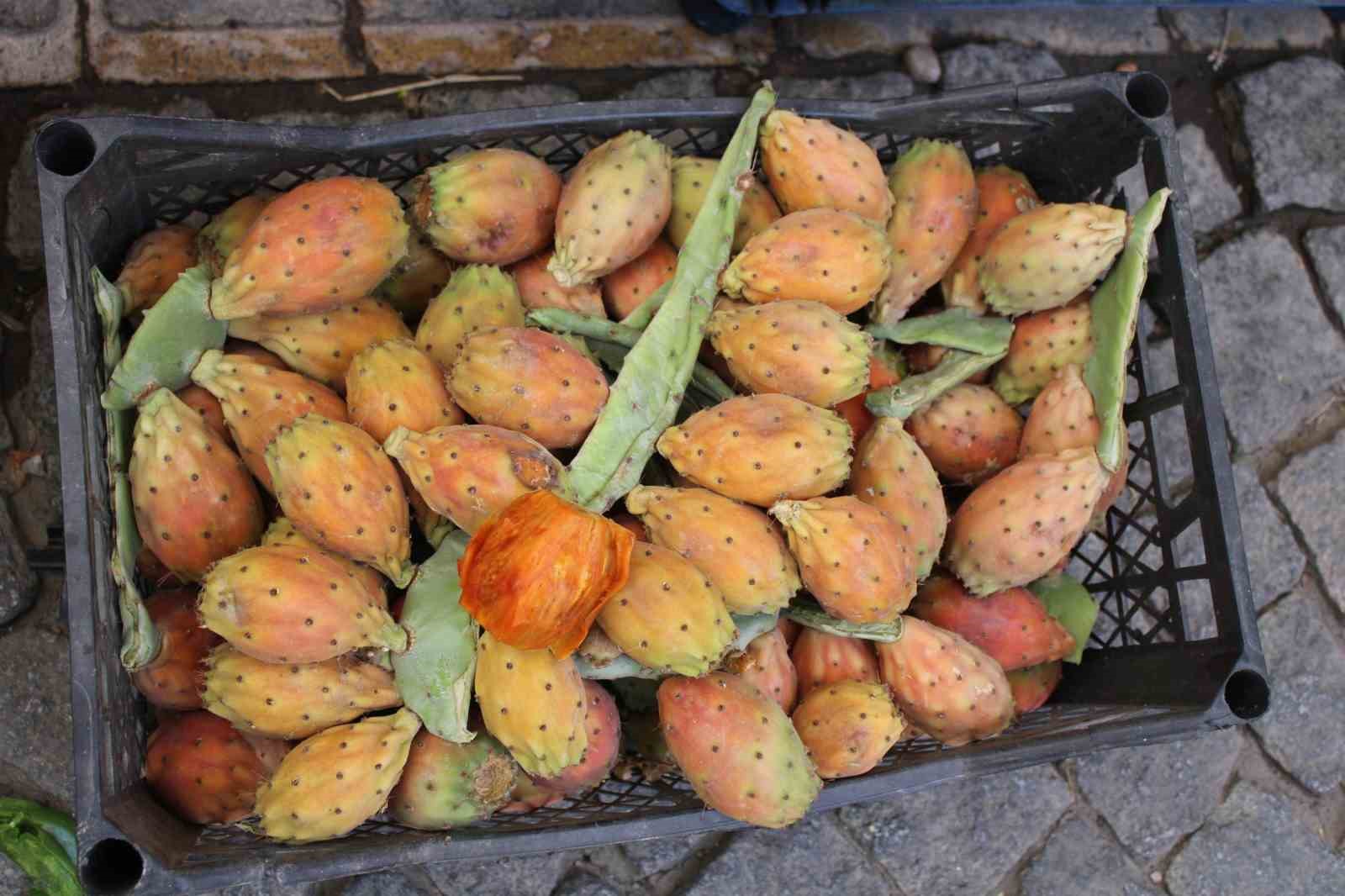 Anavatanı Güney Amerika olarak bilinen ve dikenli yapısı nedeniyle toplanması zor olan kaktüs inciri, dikkatle toplandıktan sonra pazar tezgahlarında yerini alırken içi buz dolu kasalarda soğutulup, sıcak yaz günlerinde müşterilerin beğenisini sunuluyor. Tanesi 5 lira, kilosu ise 50 TL’den satılan frenk yemişleri son dönemde büyük şehirlerde de talep görüyor. C vitamini yönünden de zengin olan kaktüs inciri meyvesinin vücuda zindelik verip, sindirim sistemini rahatlattığı ve bağırsak faaliyetlerini düzenlediği biliniyor.