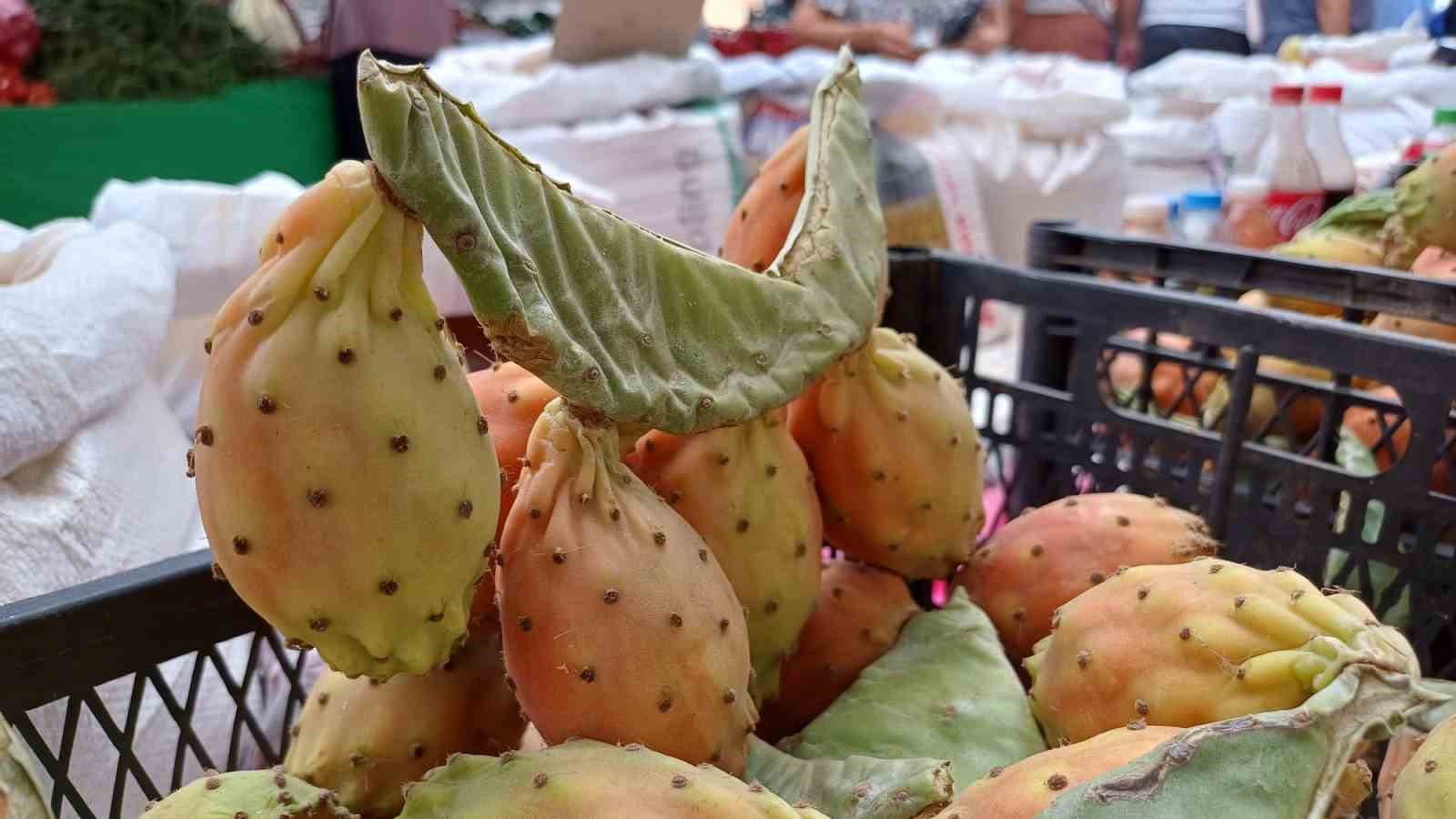 Verimli toprakları ile birçok ürüne ev sahipliği yapan Aydın’ın dağlarında kendiliğinden yetişen, kokusuyla olduğu kadar lezzetiyle de insanı cezbeden, kaynana dili, frenk yemişi ve Hint inciri olarak da bilinen organik kaktüs inciri, pazar tezgahlarının ilgi odağı oldu.