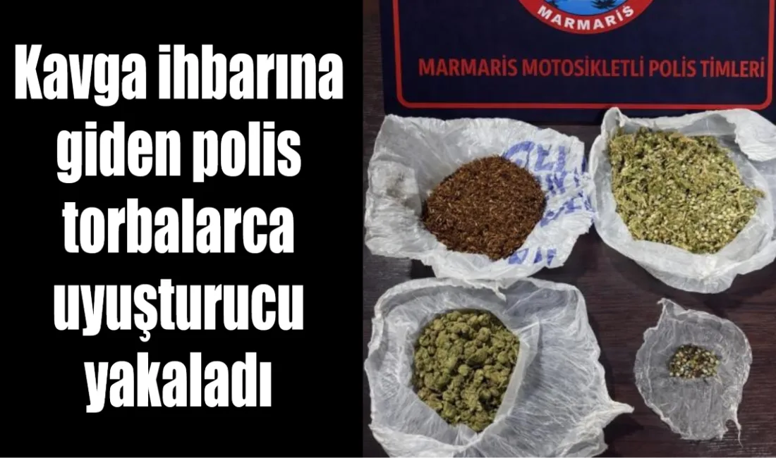 Muğla’nın Marmaris ilçesinde kavga ihbarına giden polis ekiplerinin dikkati, torbalarca uyuşturucu maddenin ele geçirilmesini sağladı.