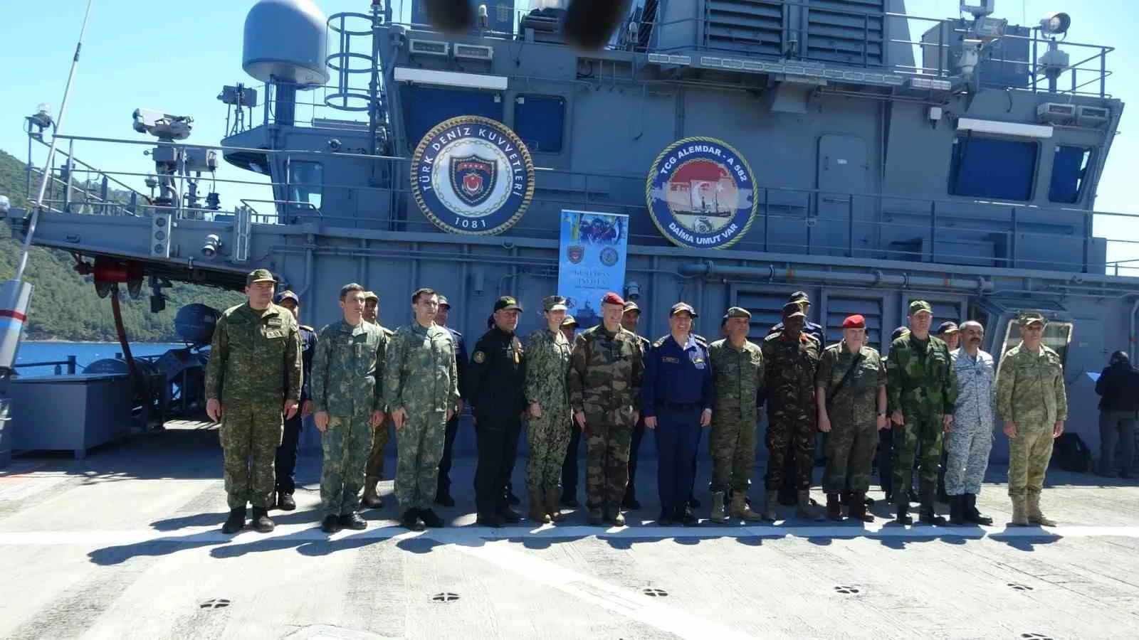Türkiye Cumhuriyeti Deniz Kuvvetleri Komutanı Oramiral Ercüment Tatlıoğlu Aksaz açıklarında 15-21 Nisan 2026 tarihleri arasında icra edilen Kurtaran-2026 Denizaltı Arama Kurtarma Davet Tatbikatı kapsamında TCG Alemdar gemisinde basın mensuplarına açıklamalarda bulundu.