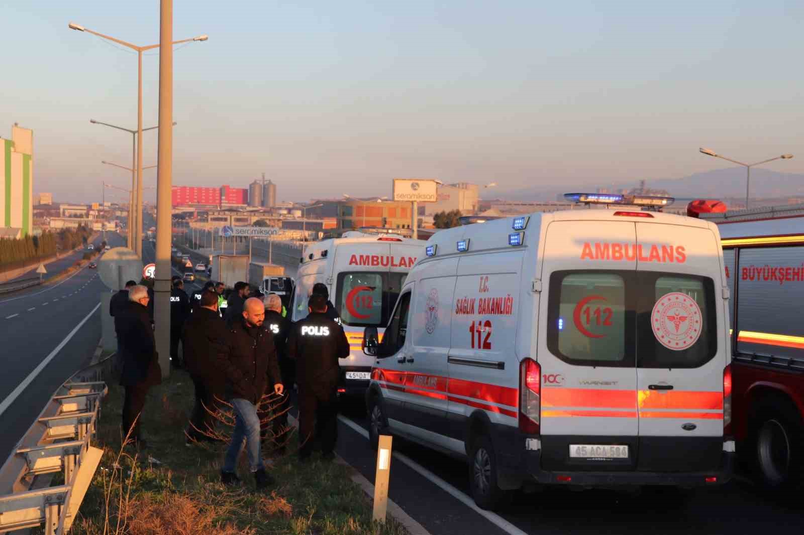 Bir fabrikadan İzmir yönünden Turgutlu istikametine işçi taşıyan Turan U. idaresindeki 35 GA 9321 plakalı servis aracı, aynı yönde seyir halindeki Çetin V. idaresindeki 06 EAG 716 plakalı tıra arkadan çarptı. Kazada 22 kişi yaralanırken, olay yerine çok sayıda 112 acil, itfaiye ve polis ekipleri sevk edildi. İşçi servisindeki bazı yaralılar itfaiye ekiplerinin yardımıyla araçtan çıkarılırken, yaralılar Turgutlu Devlet Hastanesi ve Özel Ege Umut Hastanesine kaldırıldı.