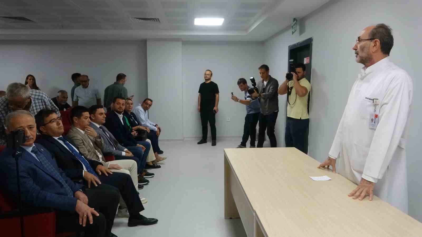 Hastanenin konferans salonunda bir konuşma yapan Başhekim Doç. Dr. Mustafa Bulut, yeni hastane hakkında bilgi verdi. Bulut, “Yataklı servislerimiz, yoğun bakımlar, laboratuvar ve acil servis hizmetleri mevcut binada bir süre daha hizmet vermeye devam edecek. 26 Eylül 2024 tarihinde bilgisayarlı tomografi cihazının taşınmasına başlanacak, tahminen 5 gün içinde demontaj ve montaj işlemleri tamamlanacaktır. Bu süre zarfında, mevcut binada devam eden tüm birimlerin (yoğun bakım ve tüm yataklı servisler gibi) yeni hizmet binasına taşınması planlanmaktadır” dedi.