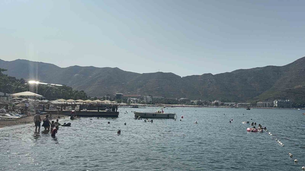 Muğla’nın Marmaris ilçesinde Kurban Bayramı tatili yoğunluğu yaşanıyor. Termometrelerin 37 dereceyi gösterdiği ilçede tatilciler, serinlemek için sahillere akın etti.