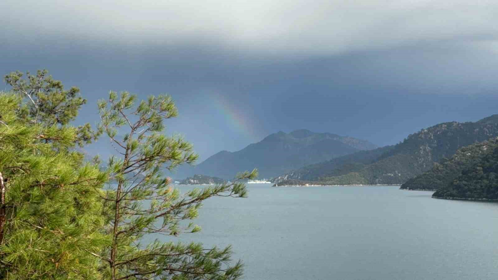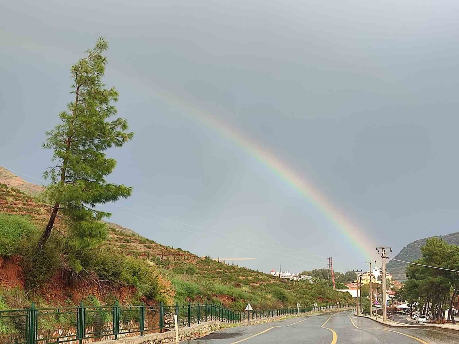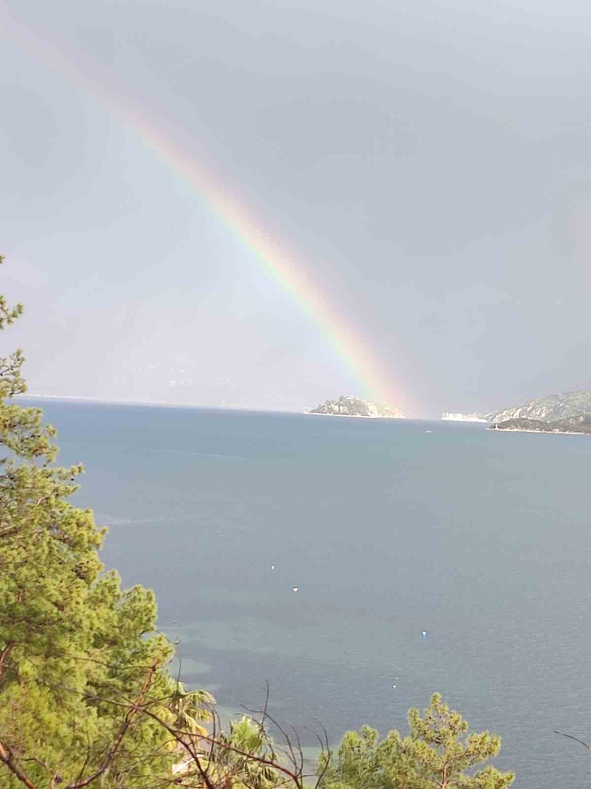 Marmaris’te sağanak yağış aralıklarla etkili oluyor. İlçe genelinde görülen yağışlar zaman zaman etkisini gösterirken, İçmeler Mahallesi’nde yağışla birlikte oluşan Gökkuşağı görsel şölen oluşturdu. Denizin üstünde oluşan gökkuşağını gören vatandaşlar cep telefonları ile anı yakalamayı ihmal etmedi. Marmaris’te yağışlı havanın önümüzdeki saatlerde de aralıklarla etkili olması bekleniyor.