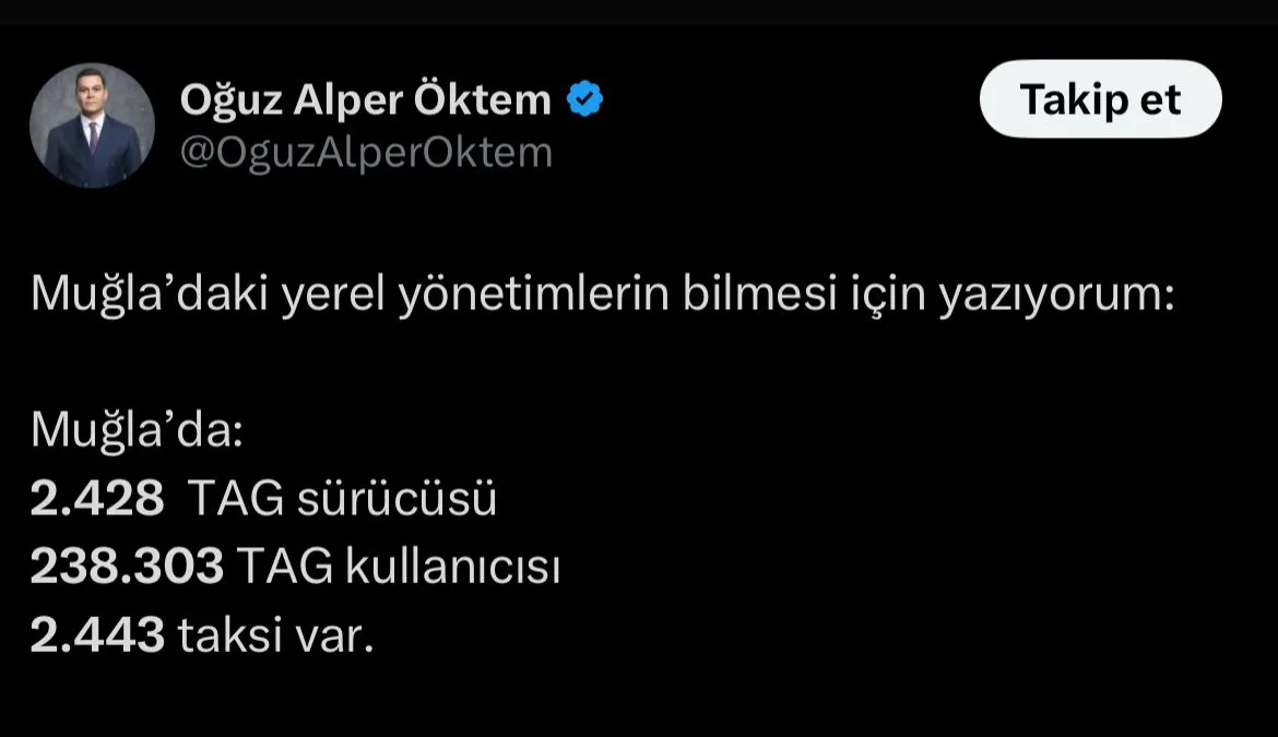 Martı İleri Teknoloji’nin kurucusu Oğuz Alper Öktem, Muğla’daki TAG sistemiyle ilgili güncel verileri X hesabından kamuoyuyla paylaştı.
