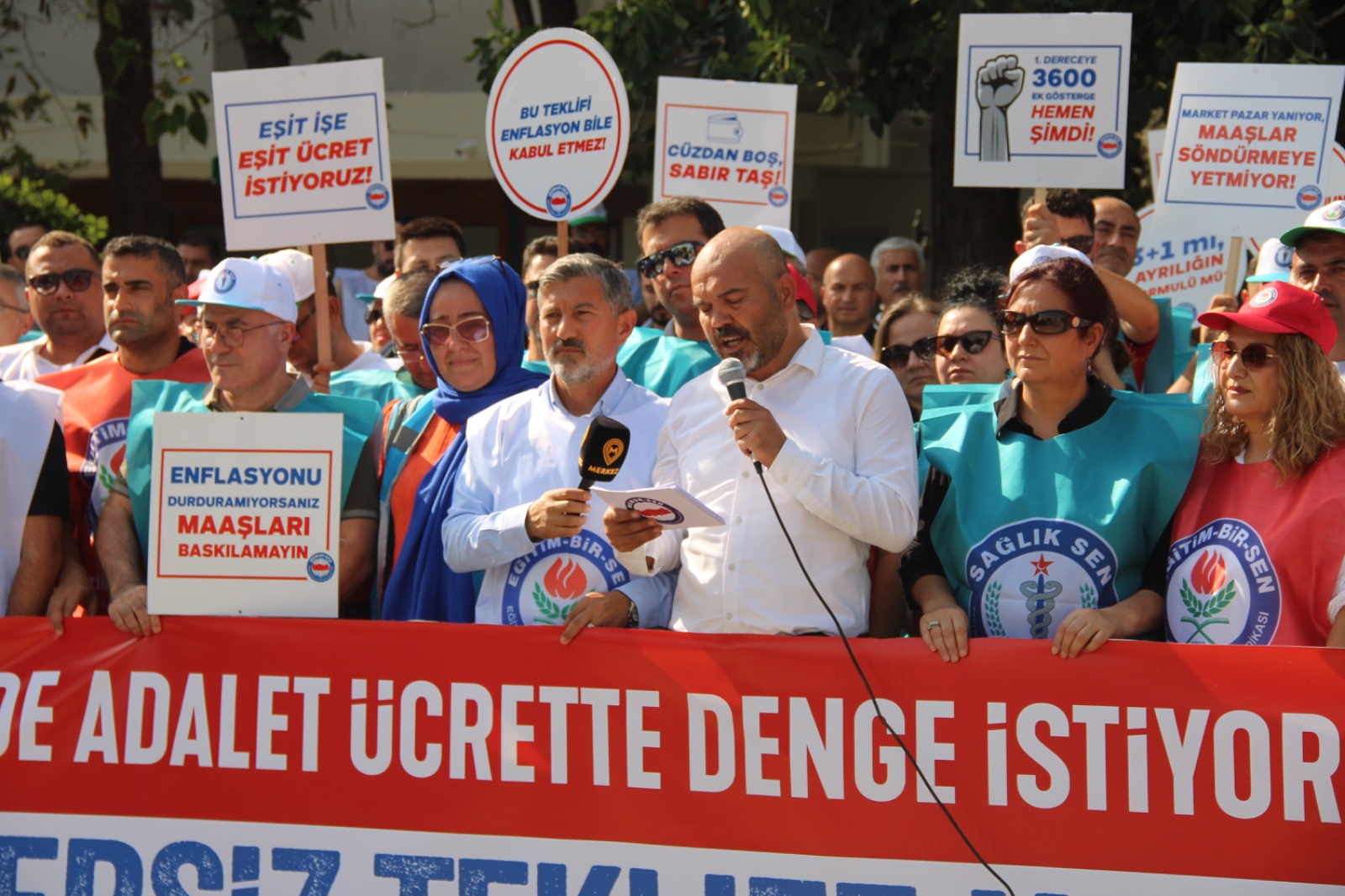 Çiçek, kamu işvereninin 2026 yılı için yüzde 10+6, 2027 yılı için yüzde 4+4 zam önerdiğini hatırlatarak, “Bu teklifi yok sayıyoruz, gerçekçi bulmuyoruz. Taban aylığa zam, refah payı ve gelirde adalet sağlayacak oran tekliflerde yer almıyor” dedi.
