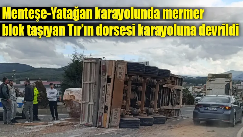 Menteşe-Yatağan karayolu üzerinde seyreden 48 AEV 906 plakalı TIR seyir halinde iken sürücüsünün direksiyon hakimiyetini kaybetmesi sonucu 48 AKF 422 plakalı dorsesi karayoluna devrildi.