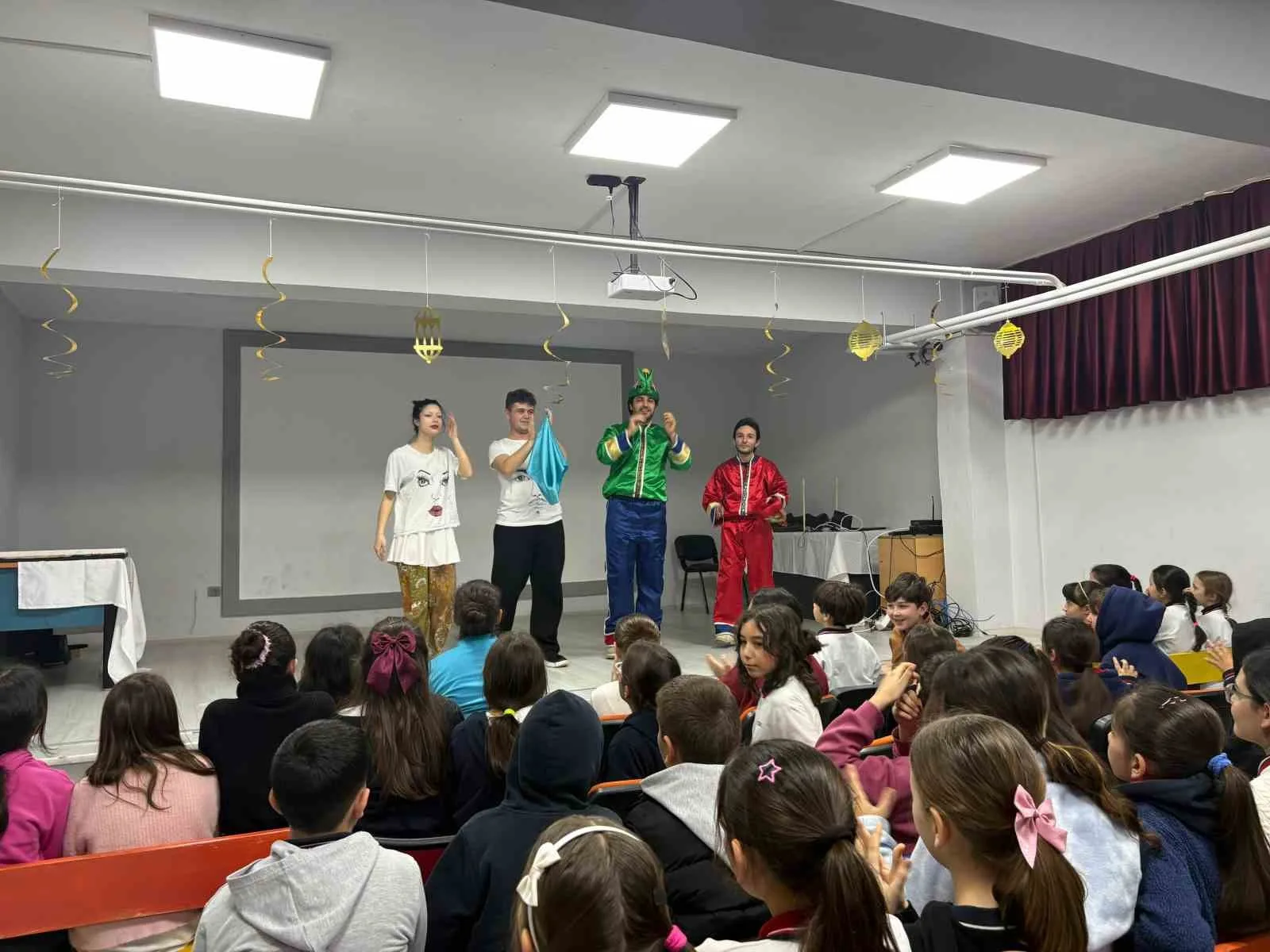 Organizasyonun her aşamasında aktif rol alan gönüllü gençler, titiz bir hazırlık sürecinin ardından sahneye çıktı. Perde arkasında ışıkla hayat bulan tasvirler çocukları eğlendirirken, sahne önündeki interaktif tiyatro gösterisiyle öğrenciler oyunun birer parçası olma fırsatı yakaladı.