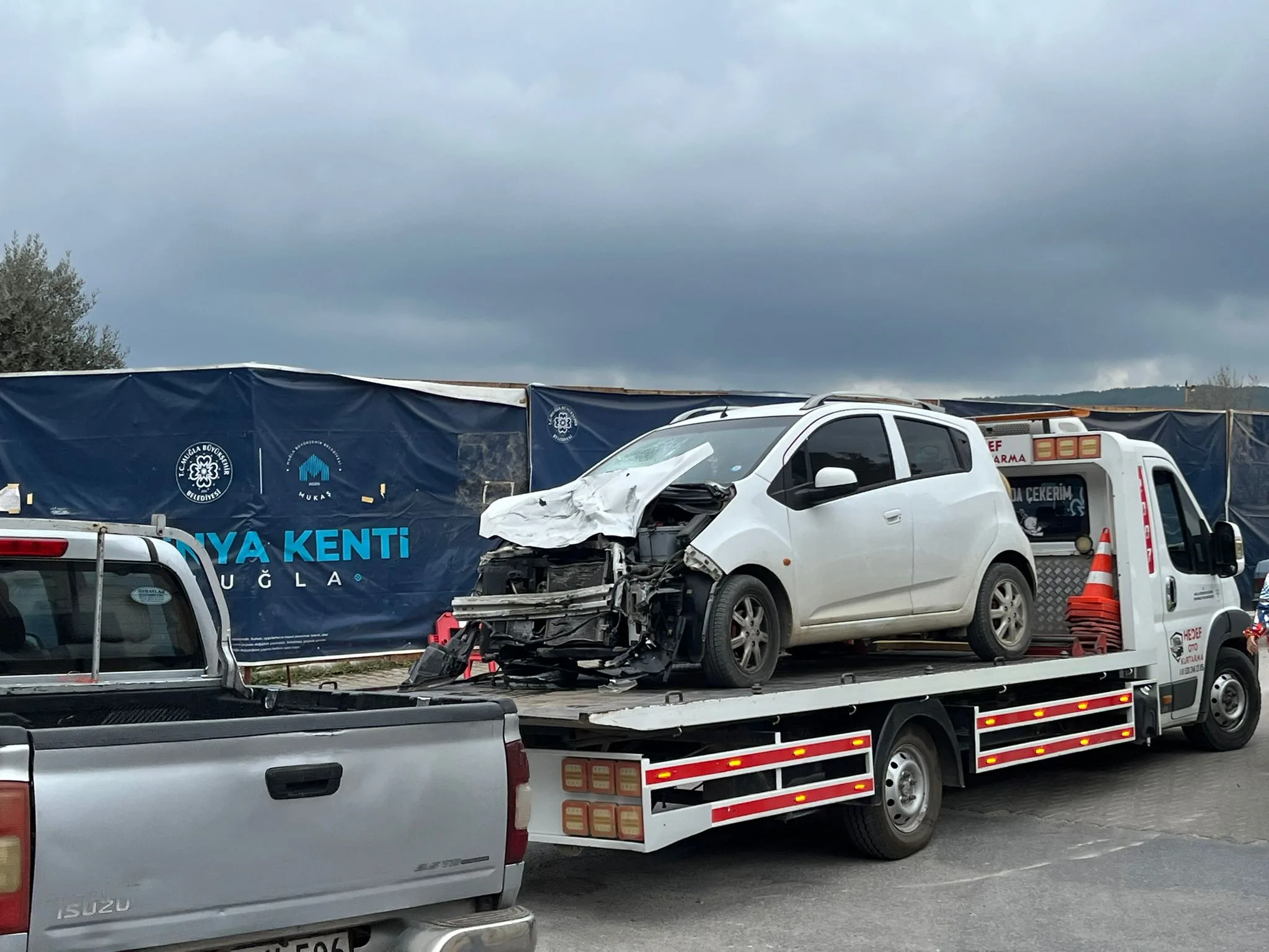 Trafik ekipleri kazayla ilgili inceleme başlatılırken araçlar çekici yardımıyla yoldan çekildi.