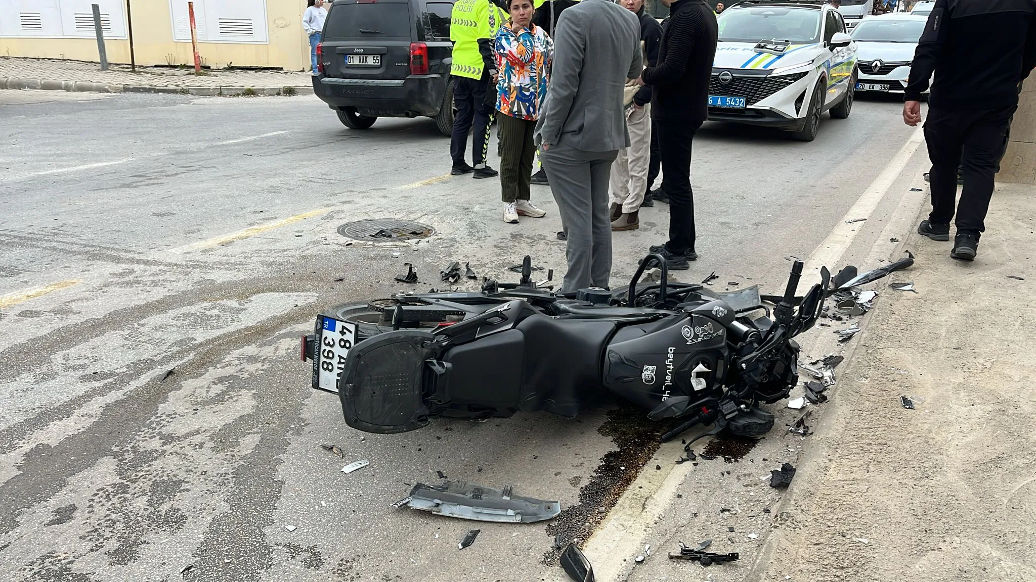 Çarpışmanın etkisiyle motosiklet adeta paramparça olurken, otomobilin de ön kısmında büyük hasar oluştu. Kazada motosiklette bulunan 2 kişi yaralandı.
