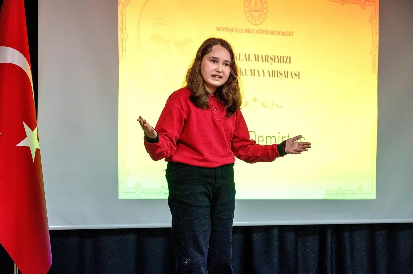 İstiklal Marşı’nın kabulünün yıl dönümü etkinlikleri kapsamında Menteşe’de gerçekleştirilen anlamlı yarışma, sertifika töreniyle taçlandırıldı. Ortaokul öğrencilerinin milli marşımızı en güzel şekilde seslendirmek için sergilediği performansların ardından, sürece katkı sunan eğitimciler ve öğrenciler bir araya geldi.