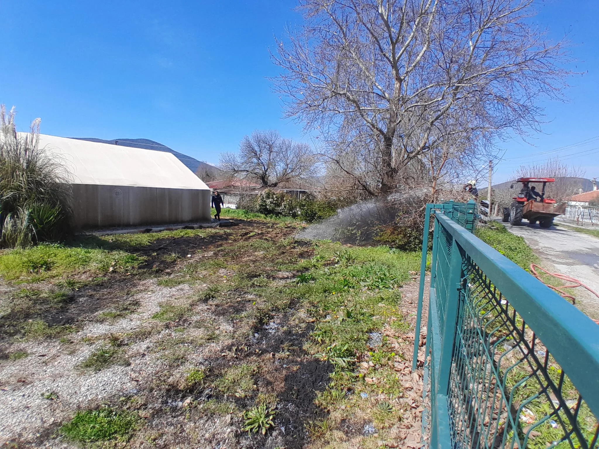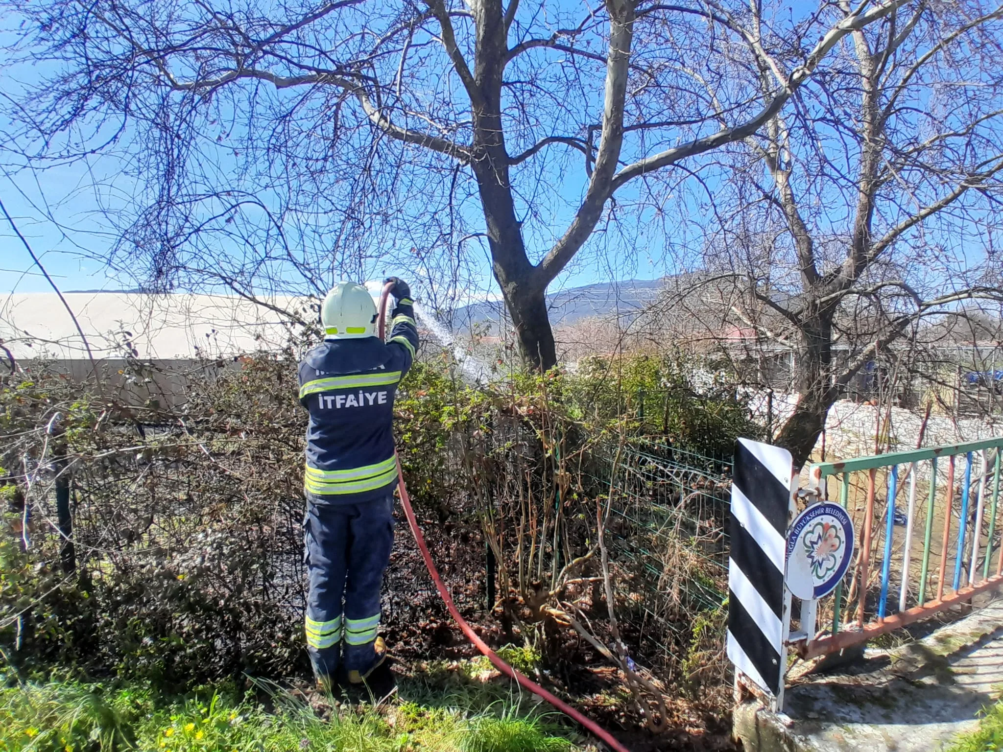 Muğla’nın Menteşe ilçesi Yeşilyurt Mahallesi’nde çıkan otluk yangını, Muğla Büyükşehir Belediyesi itfaiye ekiplerinin müdahalesiyle söndürüldü. Yangında bir çınar ağacı ve İpek böceği besleme çadırı zarar gördü.