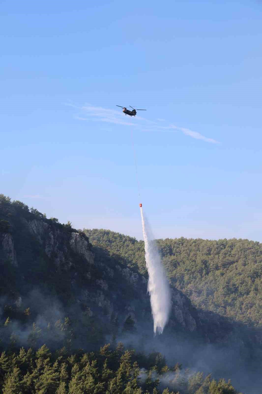 Muğla’nın Menteşe ilçesindeki orman yangını 20’nci saatine girerken, sarp arazide süren yangını kontrol altına almak için hava araçları yoğun şekilde müdahale ediyor.