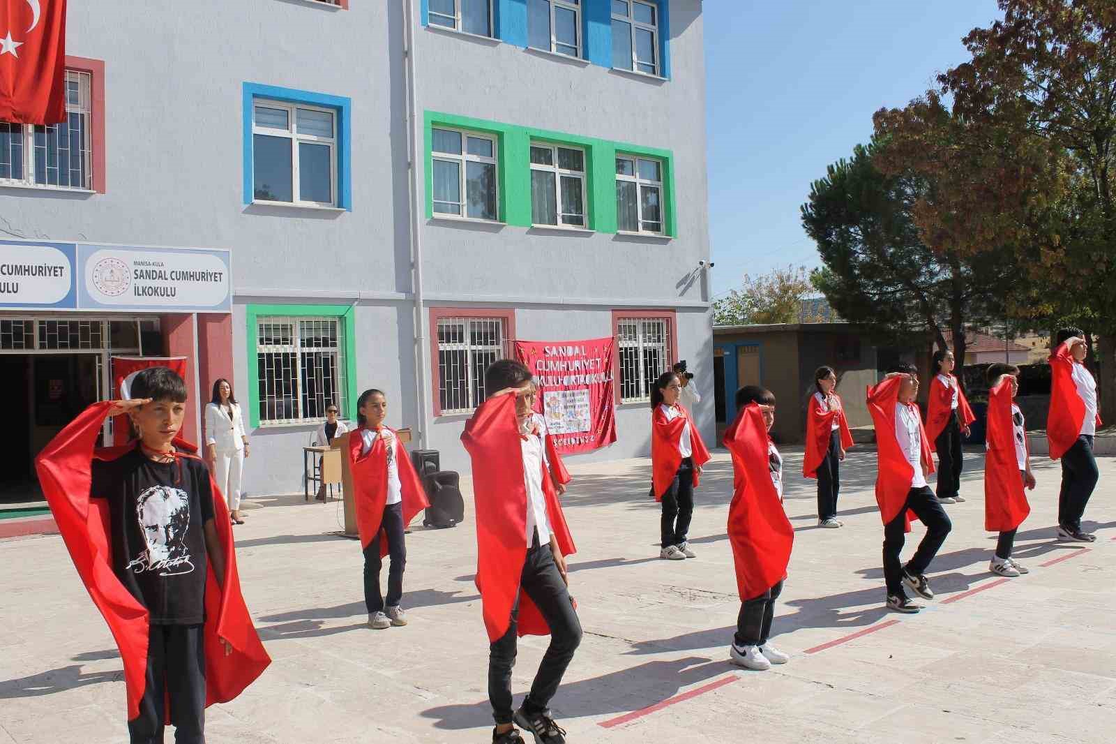 Kula’da İlköğretim Haftası, Yunus Emre ve Şehit Ömer Halisdemir Kent Meydanı’nda bulunan Atatürk Anıtı’na çelenk sunumu ile başladı. Kula İlçe Milli Eğitim Müdürü Zakir Okulmuş’un anıta çelenk sunmasının ardından kutlama programı ilçeye bağlı kırsal Sandal Mahallesi Cumhuriyet İlkokulu’nda düzenlendi. Saygı duruşunda bulunulması ve İstiklal Marşı’nın okunmasıyla başlayan programda, 73 yaşındaki Ayşe Eroğlu’nun ‘Bayrak’ şiiri programa damga vurgu. 1964-1965 eğitim öğretim yılında kutlama programının düzenlendiği okuldan mezun olan Ayşe Nine, ilkokul çağında öğretmeninin ezberlettiği ‘Bayrak’ şiirini 59 yıl sonra mezun olduğu okulda öğrenim gören minik öğrencilerin karşısında okudu. Protokol üyeleri ve katılımcıların ayakta alkışladığı Ayşe Eroğlu, kendi torunlarının da mezun olduğu okulda İlköğretim Haftası’nı kutlamanın sevincini yaşadı.