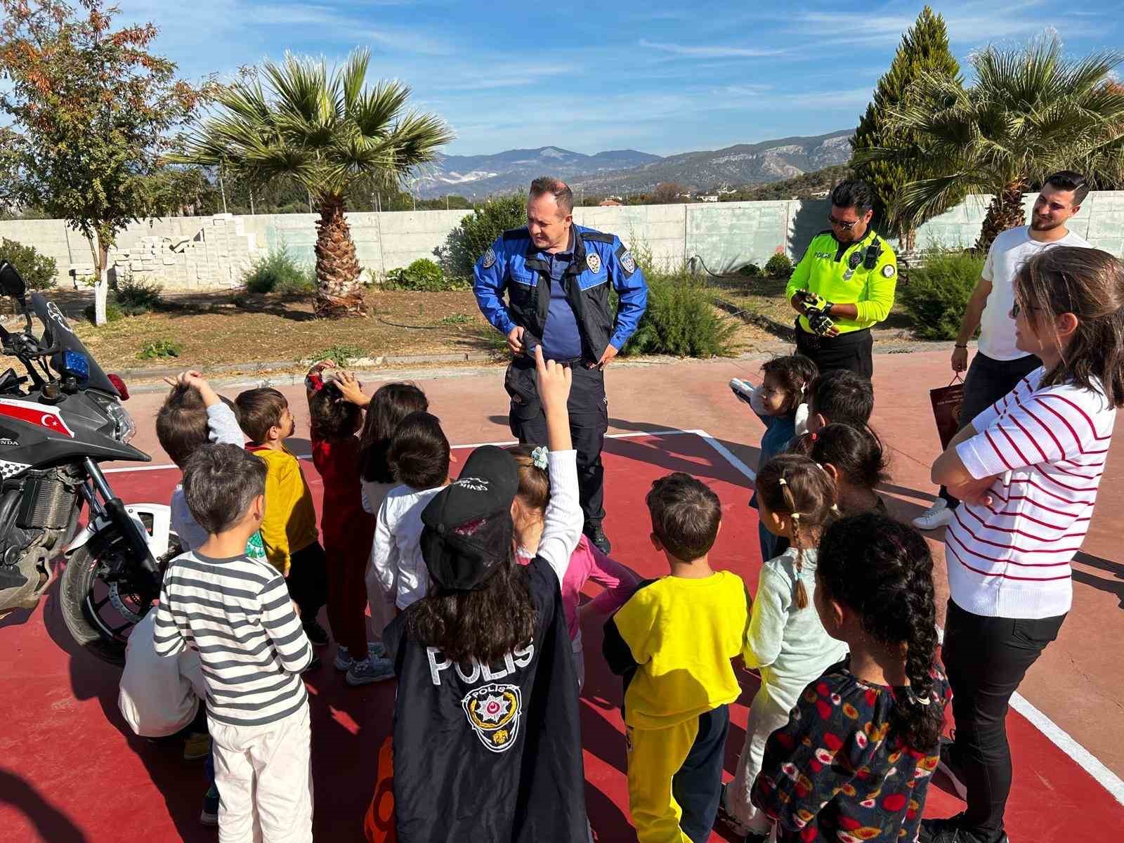 Muğla’nın Milas ilçesine bağlı Kıyılama mevkiinde bulunan Şehit Murat İnci İlköğretim Okulu Anaokulu bölümü, Meslek Tanıtım Günleri kapsamında polislik mesleğine ev sahipliği yaptı.