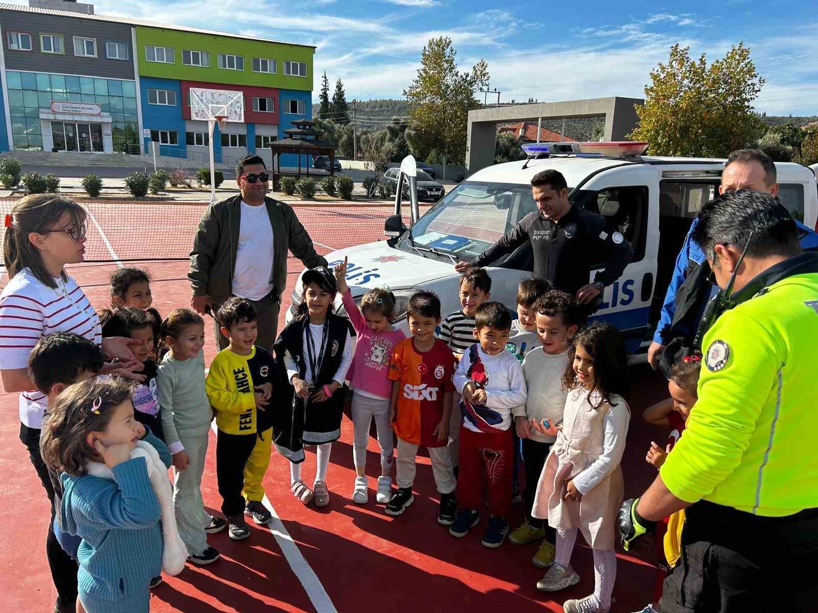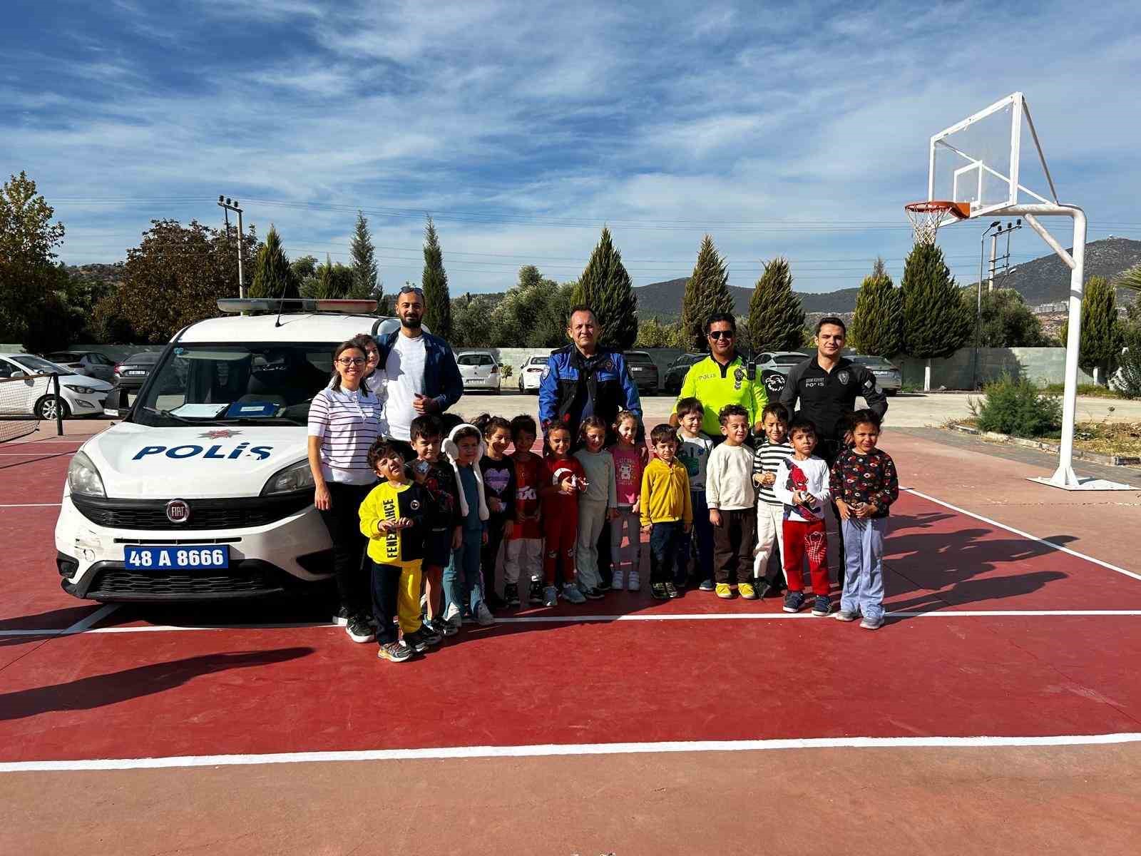 Milas İlçe Emniyet Müdürlüğü ekiplerinin katılımıyla gerçekleştirilen etkinlikte, minik öğrencilere polislik mesleği hakkında bilgi verilirken ekip araçları da tanıtıldı. Anaokulu öğrencilerine polislik mesleğinin temel görev ve sorumlulukları eğlenceli bir dille anlatılarak, çocukların mesleğe olan ilgisi artırılmaya çalışıldı. Emniyet ekipleri, miniklere polislerin toplum güvenliği için üstlendiği rolleri örneklerle açıklarken, aynı zamanda ekip araçlarını da yakından tanıttı.