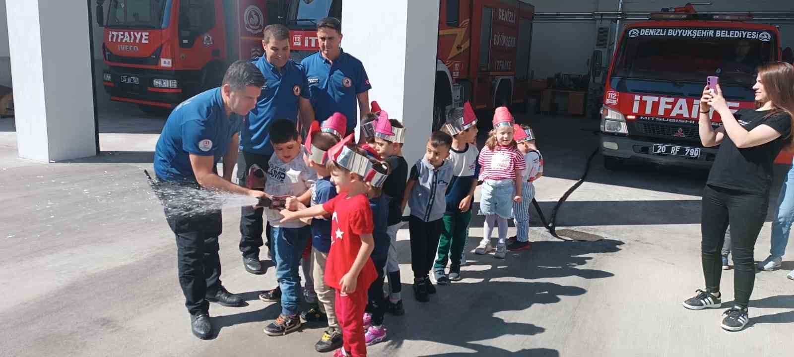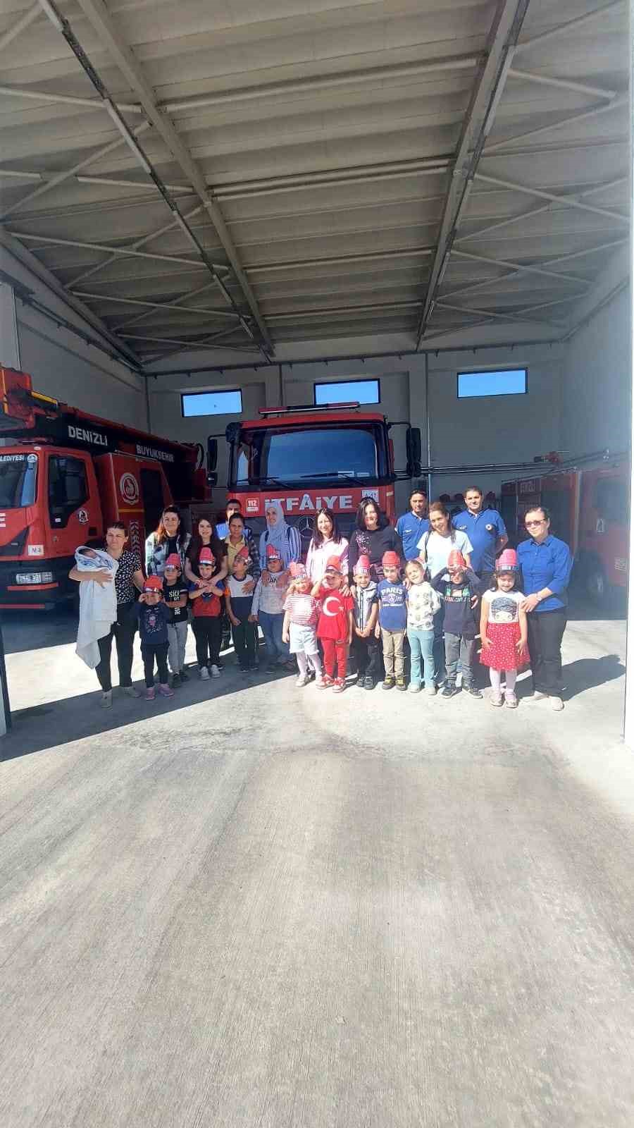 Denizli’nin Buldan ilçesinde bulunan Yusuf Gökçe Zafer İlkokulu ana sınıfı öğrencileri 25 Eylül-1 Ekim İtfaiye Haftası nedeniyle Denizli Büyükşehir Belediyesi Buldan İtfaiye Grup Şefliğini ziyaret ettiler. İtfaiye personeli tarafından miniklere ekipmanlar ve araçlar hakkında bilgilendirme yapılmasının ardından yangın söndürme ile ilgili tatbikat yapıldı. Yangın söndürme hortumunu eline alan miniklerin heyecanı ise dikkat çekti.