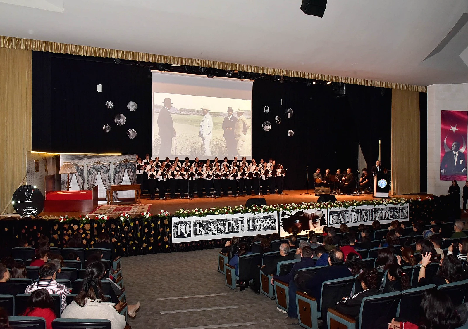 Cumhuriyet Meydanı’ndaki törenin ardından anma programı Muğla Sıtkı Koçman Üniversitesi (MSKÜ) Atatürk Kültür Merkezi’nde devam etti.