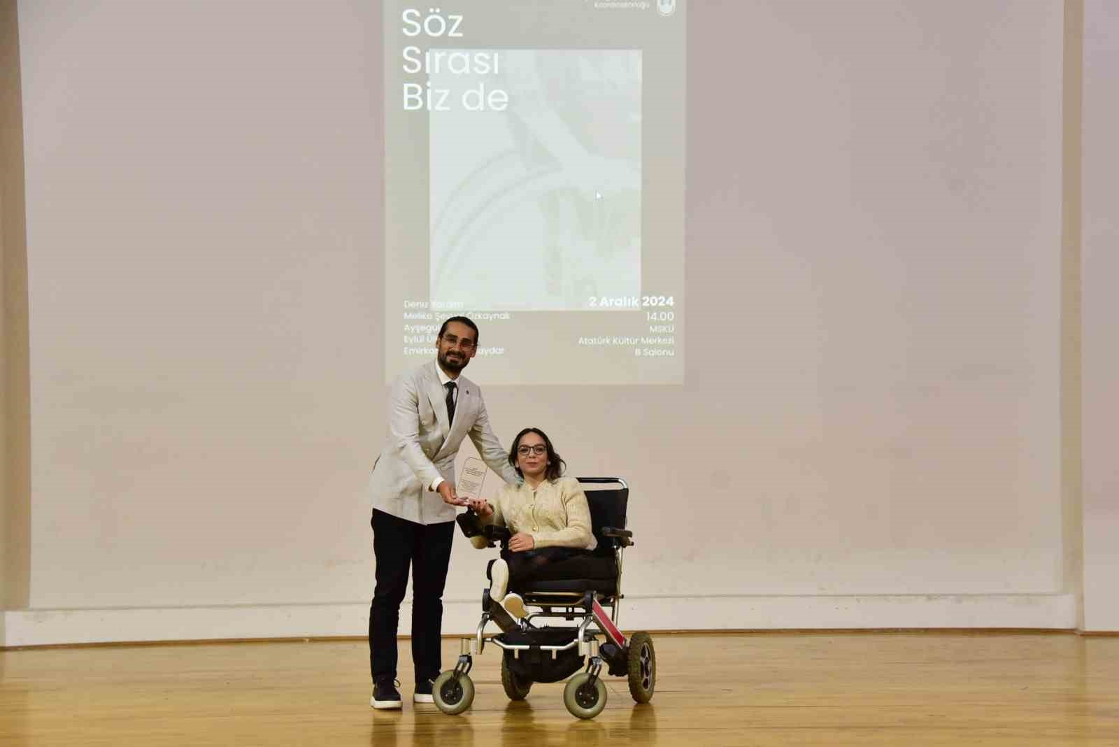 Panel, Emirkan Ensari Baydar’ın moderatörlüğünde MSKÜ’nün özel öğrencileri Deniz Yardım, Melike Şevval Özkaynak, Ayşegül Tekin ve Eylül Ülkü Yiğit’in konuşmalarıyla devam etti. Öğrenciler, hayat hikâyelerini, karşılaştıkları zorlukları ve başarı yolculuklarını paylaştı. Panelde, bireylerin toplumda daha fazla desteklenmesi gerektiği vurgulandı.