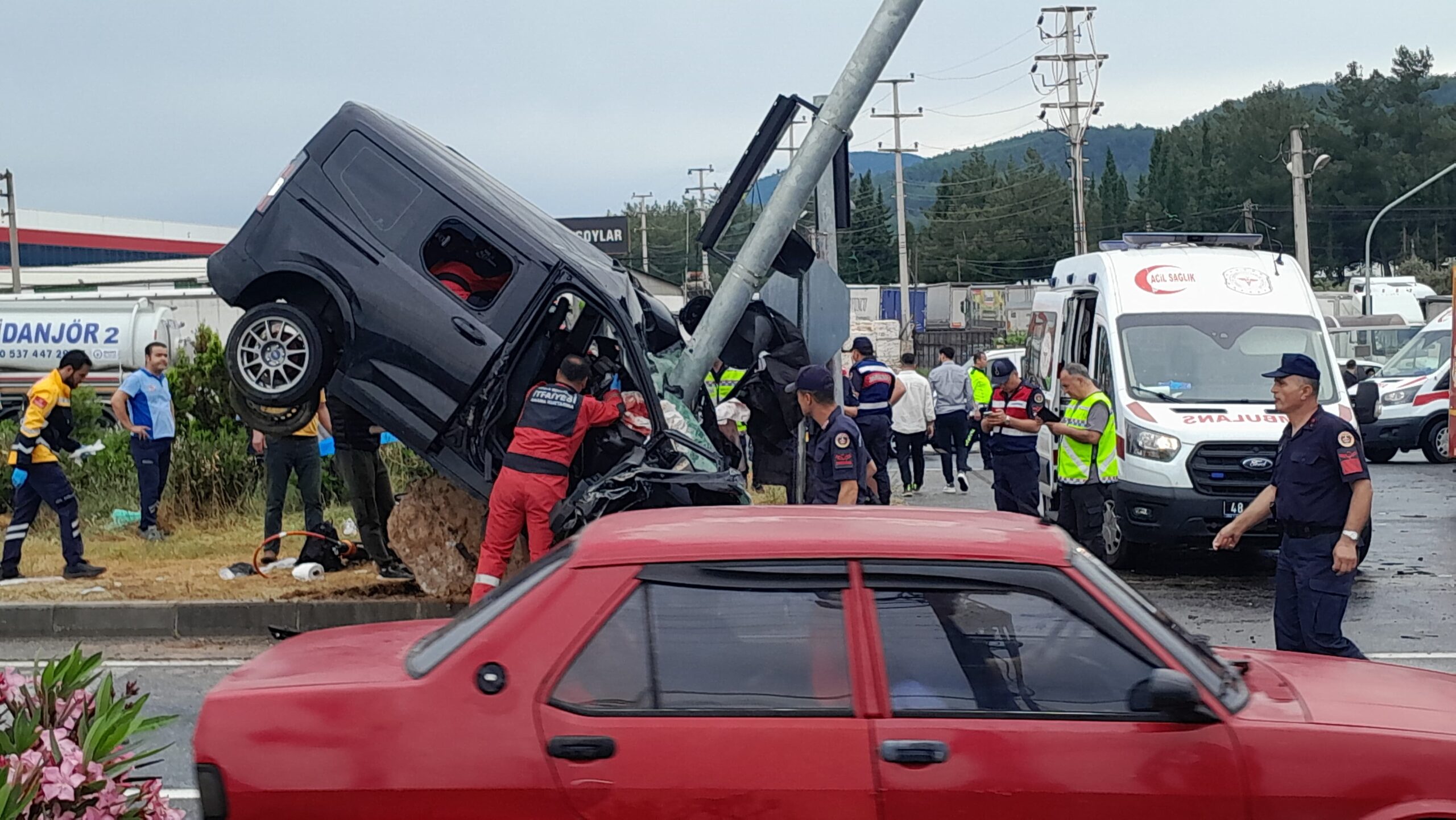 Tek taraflı meydana gelen kazada araçta bulunan 3 kişi yaralandı. Olay yerine sağlık, polis ve itfaiye ekipleri sevk edildi. Yaralılar ilk müdahalelerinin ardından hastaneye kaldırıldı.