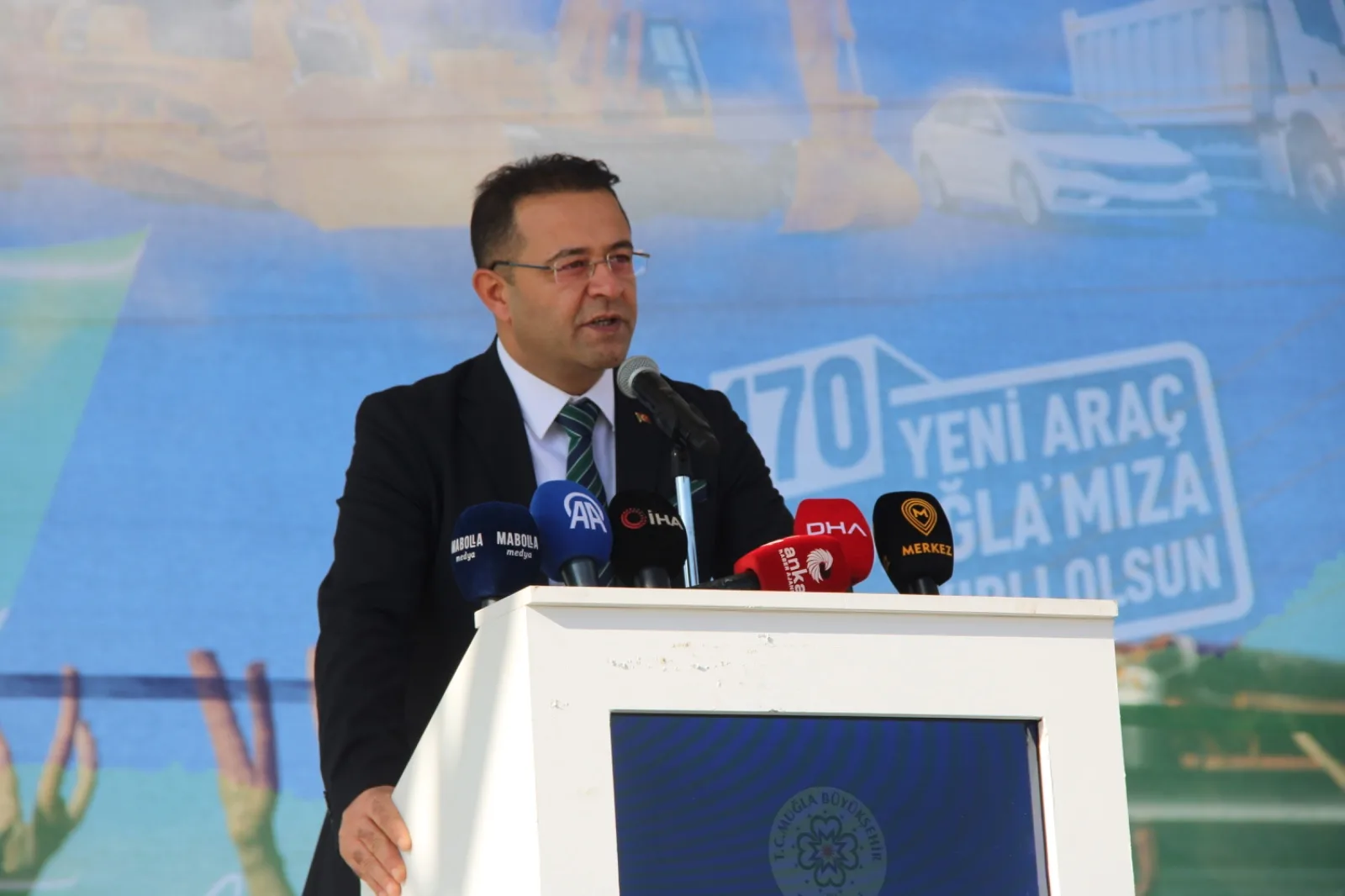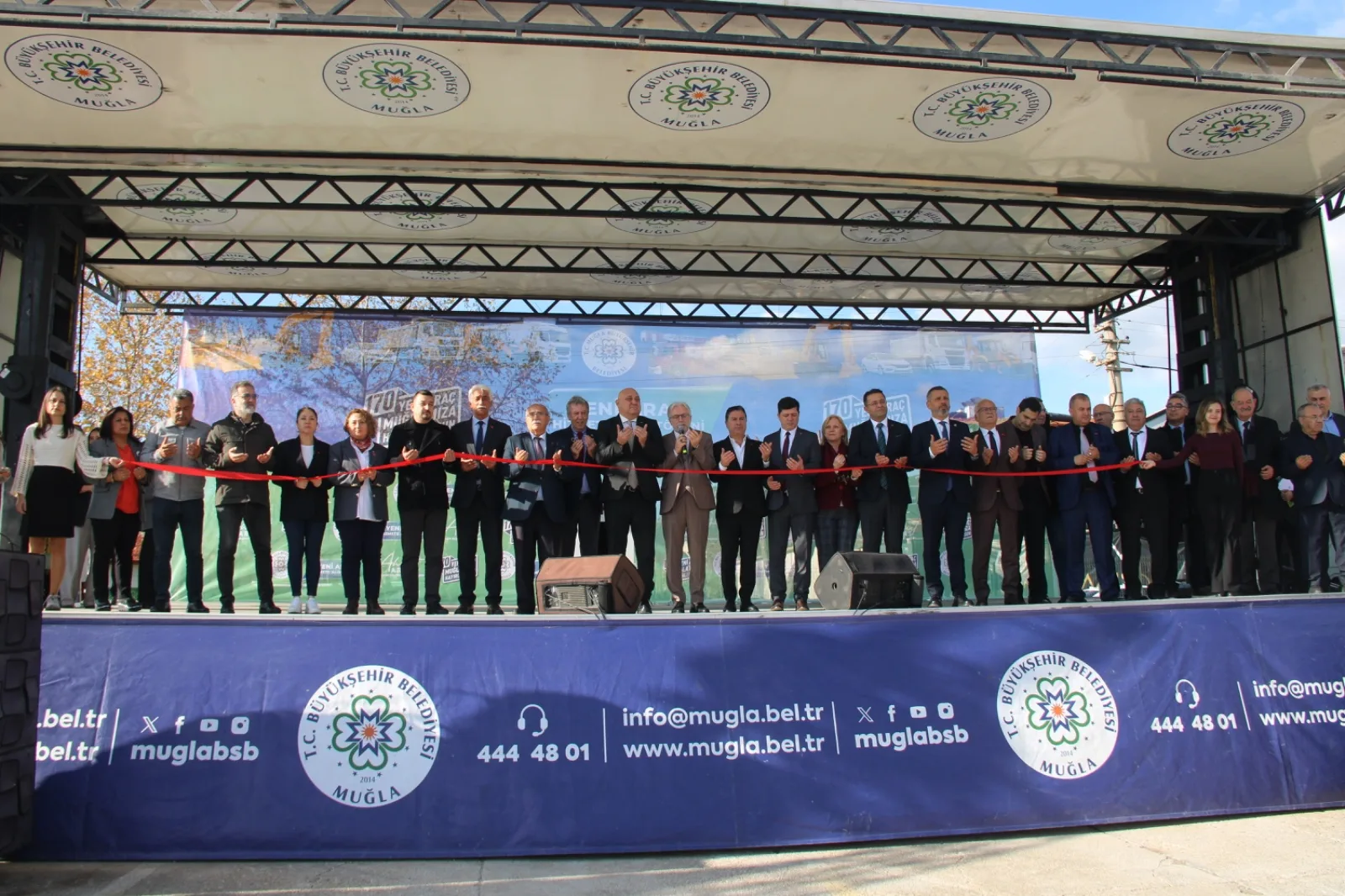 Muğla Büyükşehir Belediyesi’nin farklı birimlerinde kullanılmak üzere aldığı 170 araç için geniş katılımlı bir tören düzenlendi. Törene Muğla Büyükşehir Belediye Başkanı Ahmet Aras, CHP Muğla İl Başkanı Nail Kızıl, Büyükşehir Belediyesi Genel Sekreteri Tayfun Yılmaz, ilçe belediye başkanları, STK temsilcileri, kurum temsilcileri ve CHP teşkilatı katıldı.