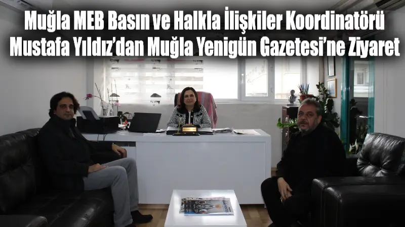 Muğla İl Milli Eğitim Basın ve Halkla İlişkiler Koordinatörü Mustafa Yıldız; Muğla Yenigün Gazetesi İmtiyaz Sahibi Hilal Nizamoğlu Solmaz, Yenigün Gazetesi İnternet Sitesi Sorumlu Yazı İşleri Müdürü Serkan Solmaz ve Yazı İşleri Müdürü Hüseyin Atılgan’ı ziyaret etti.