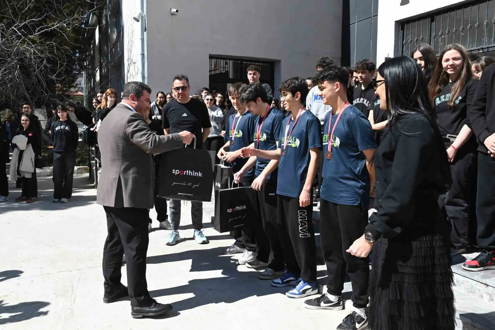 Okul bahçesinde yapılan törende okul idaresi tarafından şampiyon sporculara hediyeler verildi. Madalyaları ve okul tarihinde ilk defa elde edilen Türkiye üçüncülük kupası sporculara verildi. Türkiye şampiyonasında ilk defa bir devlet okulunun dereceye girmesi büyük alkış alırken, Okul Müdürü Mehmet Akif Ağır; “Beden eğitimi öğretmenimiz Ümit Çolakoğlu ve sporcularımız Ali Eren Ulusakarya, Metehan Zabir, Ufuk Deniz, Yiğit Yeniaydın okulumuza ve ilimize bu gururu yaşattıkları için hepsini yürekten kutluyorum. Menteşe Anadolu Lisesi olarak eğitimde ve sosyal etkinliklerde başarımız devam edecek” dedi.