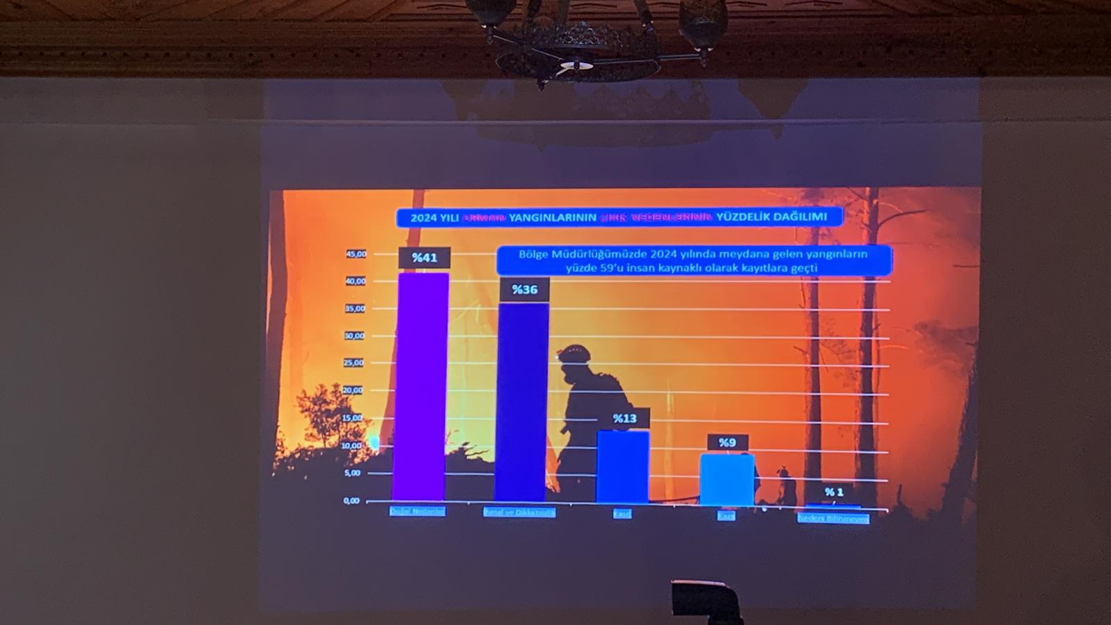 Ülküdür, 2024 yılı yangınlarına dair paylaştığı sunumda tüm yangın söndürme çalışmaları hakkında bilgilendirmelerde bulundu.