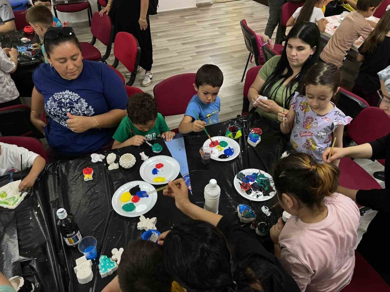 Çocuk Atölyesi’nde gerçekleştirilen etkinlikte anne ve çocuklar birlikte seramik hamurundan figürler oluşturdu. Ardından bu figürleri rengârenk boyayan katılımcılar, hem el becerilerini geliştirme hem de birlikte üretmenin mutluluğunu yaşama fırsatı buldu.