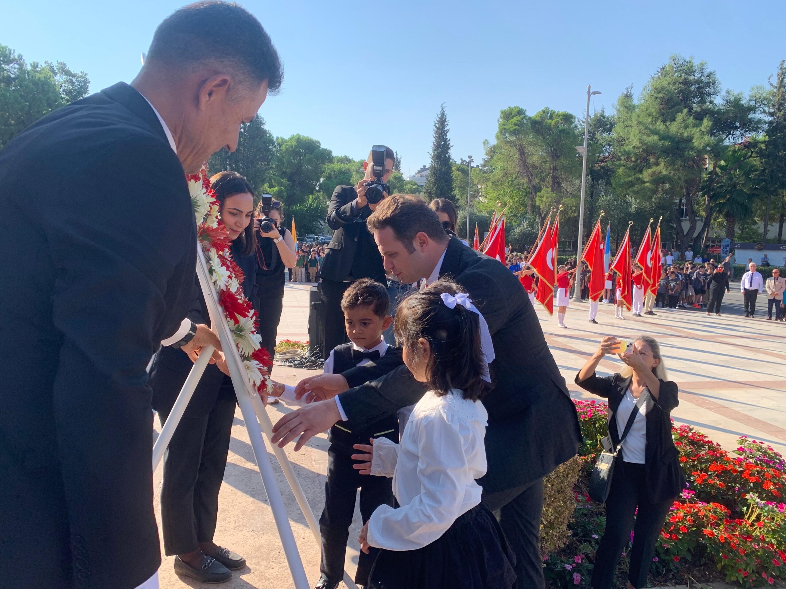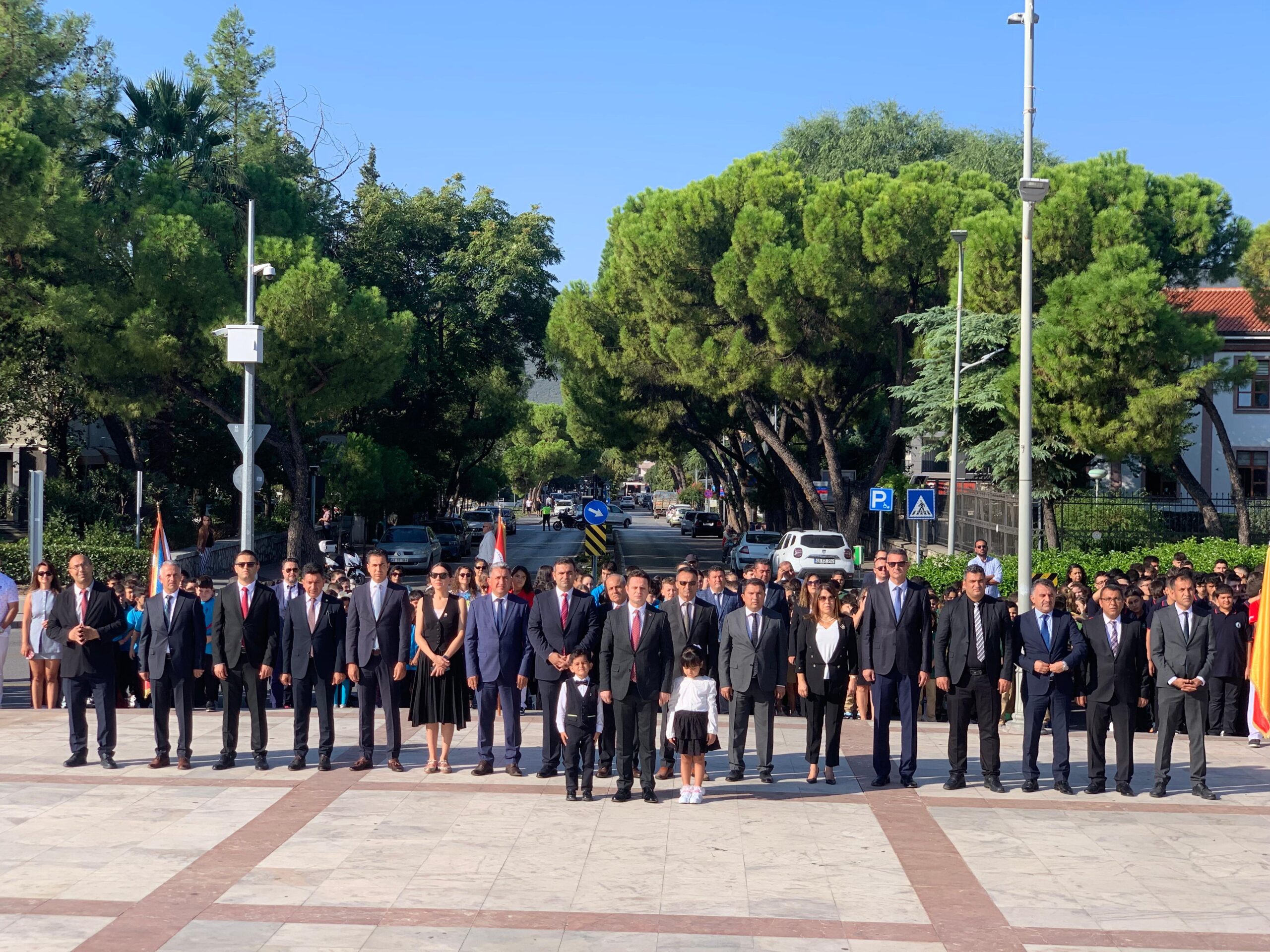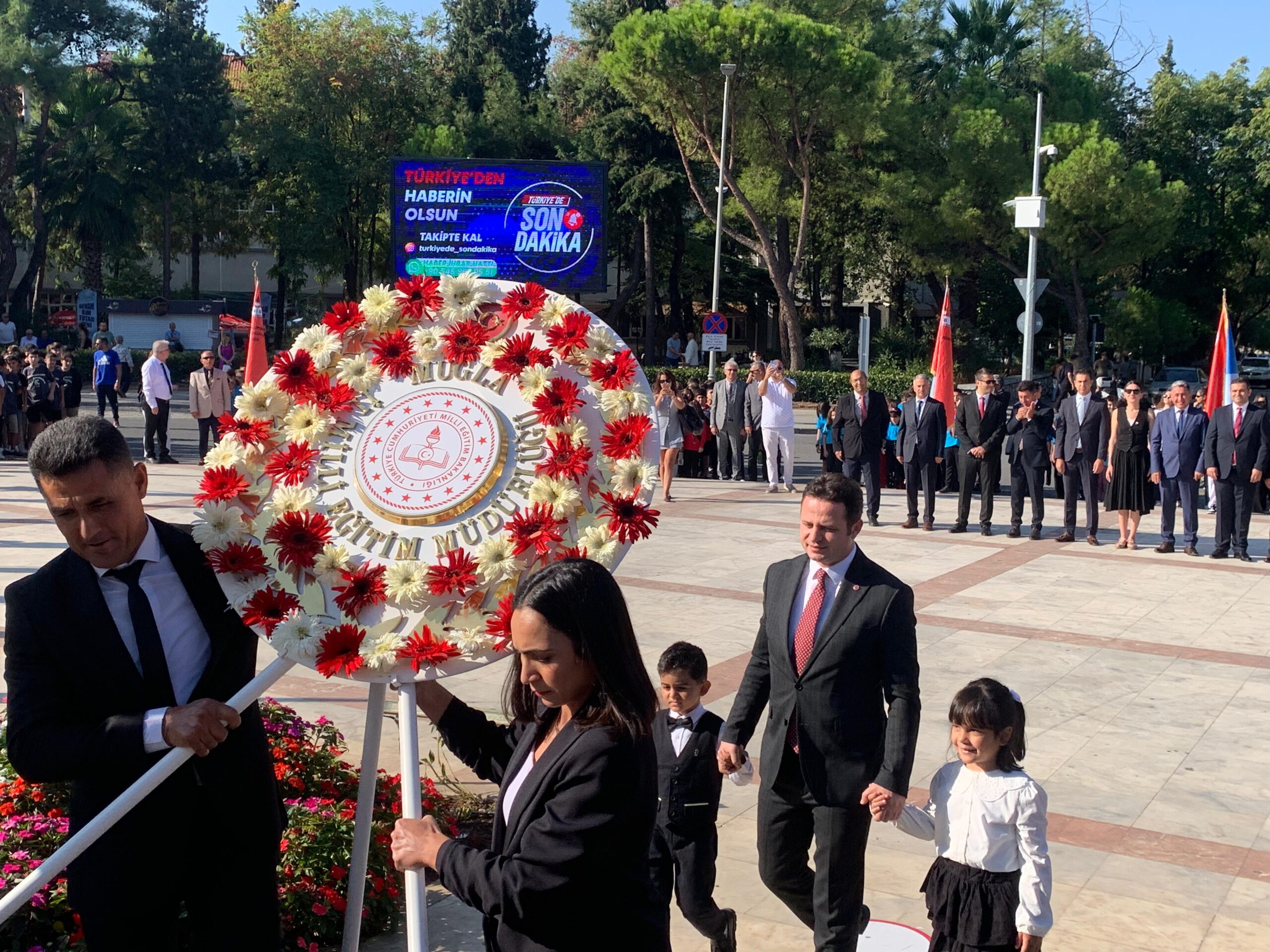 Tören, saygı duruşu ve İstiklal Marşı’nın okunmasıyla başladı. Muğla İl Milli Eğitim Müdürü Emre Çay çelengini Cumhuriyet Meydanı’nda bulunan Atatürk Anıtı’na sundu.