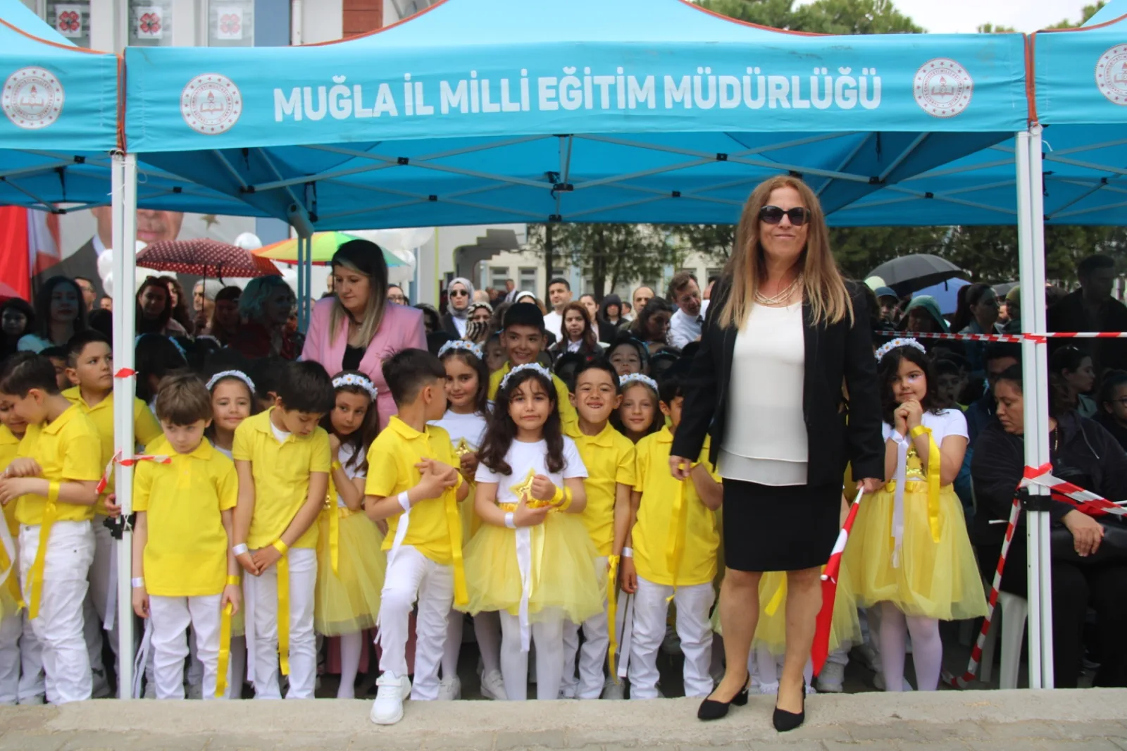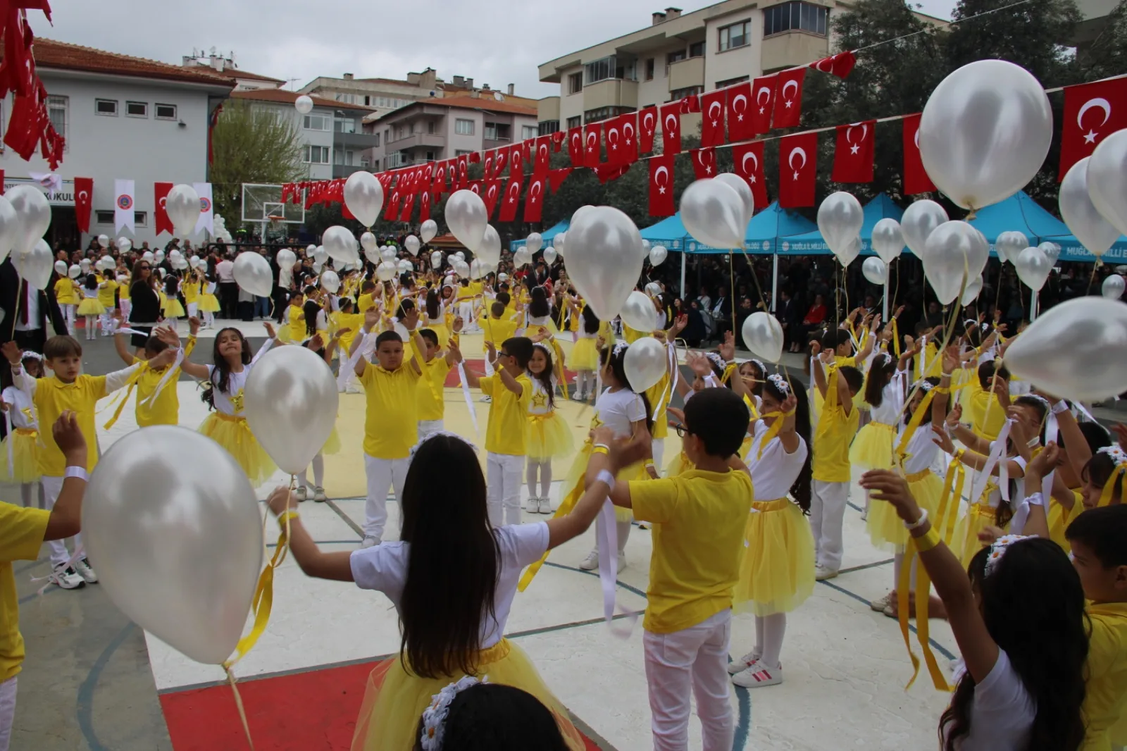 Kapalı ve yağışlı havaya rağmen kutlamalara yoğun katılım sağlanırken, çocukların neşesi ve heyecanı görüldü. Renkli görüntülere sahne olan program, 23 Nisan ruhunun Muğla’da bir kez daha güçlü şekilde yaşandığını gösterdi.