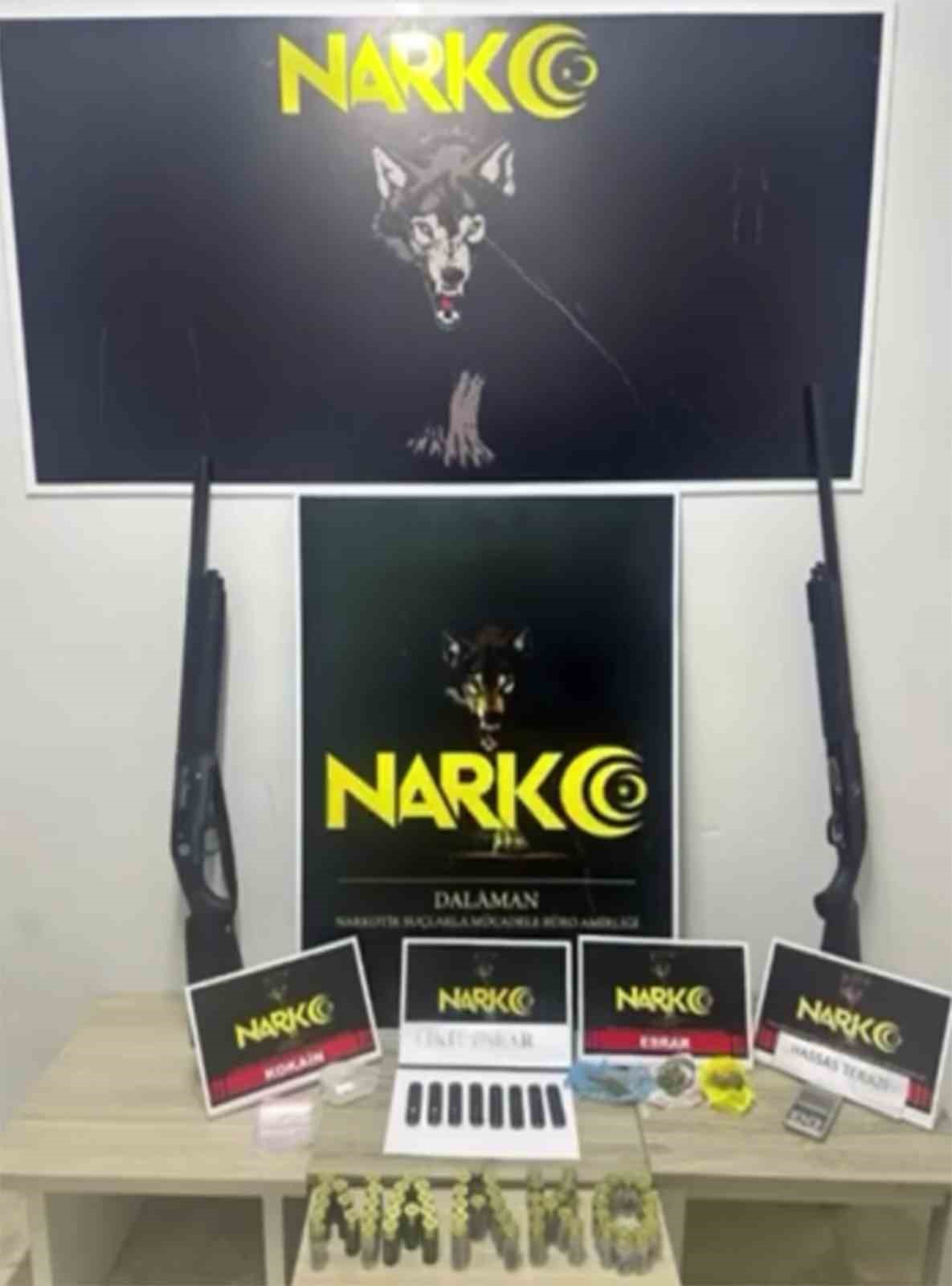 Ortaca Cumhuriyet Başsavcılığı koordinesinde Muğla Emniyet Müdürlüğü Narkotik Suçlarla Mücadele Şube Müdürlüğü ekipleri tarafından Dalaman, Ortaca, Fethiye ve Köyceğiz ilçelerinde uyuşturucu satışı yapan şüphelilere yönelik eş zamanlı operasyon düzenlendi. Yapılan operasyonda 15 şüpheli yakalandı. Şüphelilerin ikametinde yapılan aramada; 4,9 gram kokain 16 gram esrar 8 adet likit esrar hassas terazi, 2 adet ruhsatsız yivsiz av tüfeği ve 92 adet kartuş ele geçirildi.