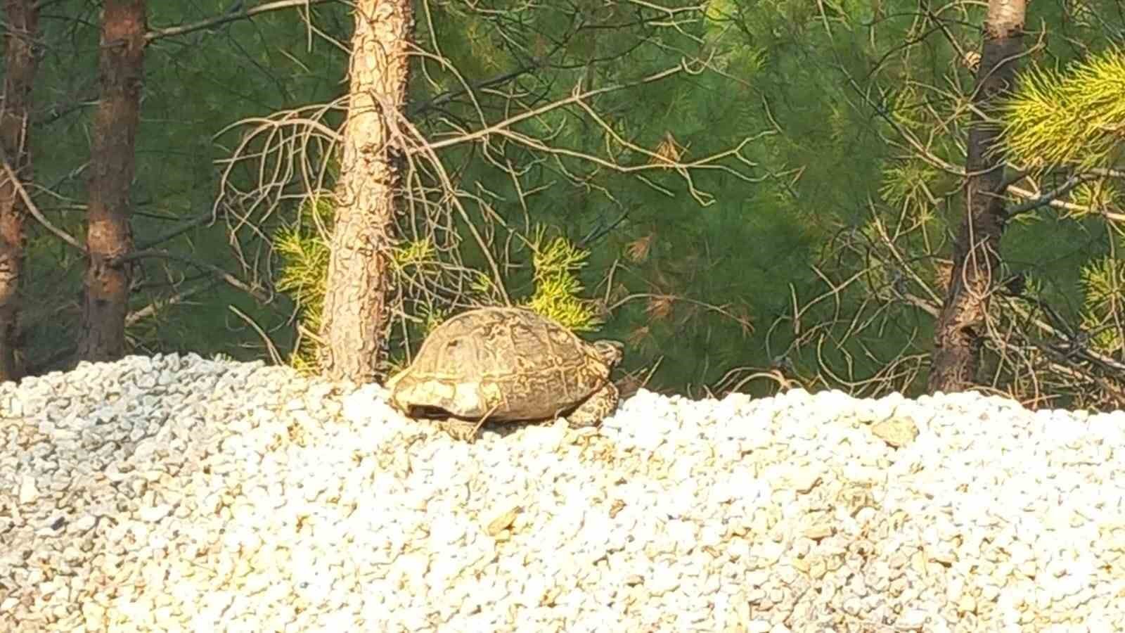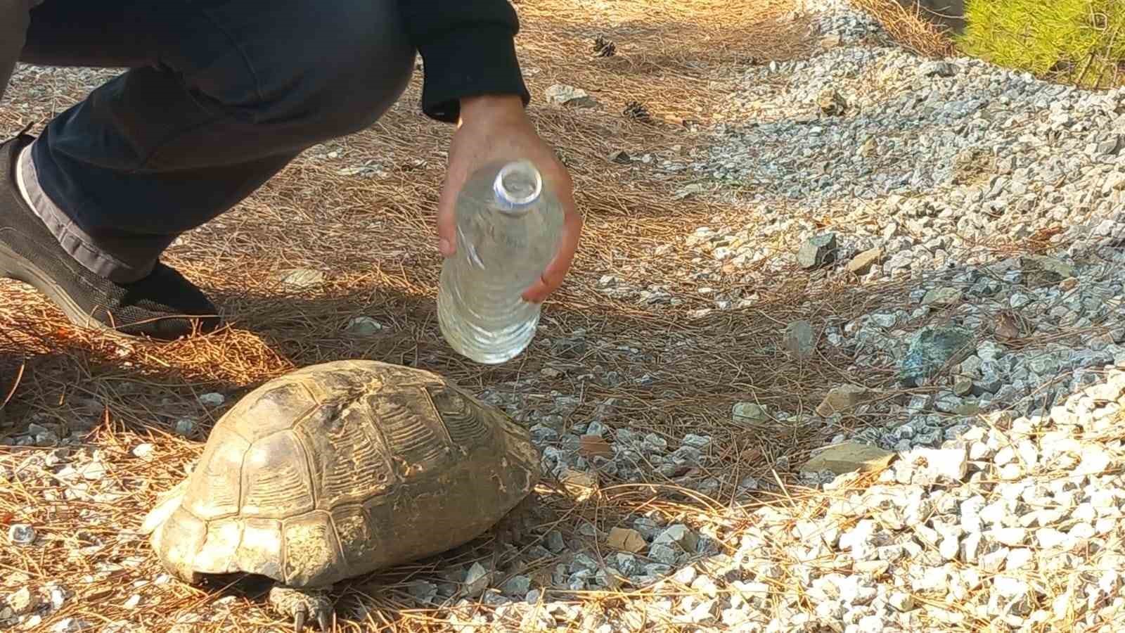 Muğla’nın Dalaman ilçesinde çıkan orman yangını doğal hayatı olumsuz etkilerken, alevlerden kaçan bir kaplumbağaya çevredekiler tarafından su verilerek, güvenli alana bırakıldı.