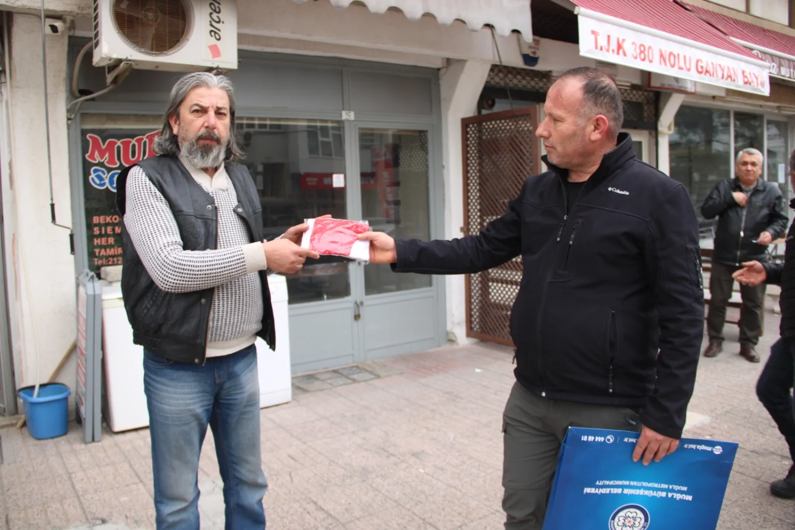 Türk bayrağına yönelik saldırının ardından Muğla’da başlatılan bayrak seferberliği genişleyerek sürdü; Büyükşehir Belediyesi ekipleri esnaf ve vatandaşlara ay yıldızlı al bayrak dağıttı.