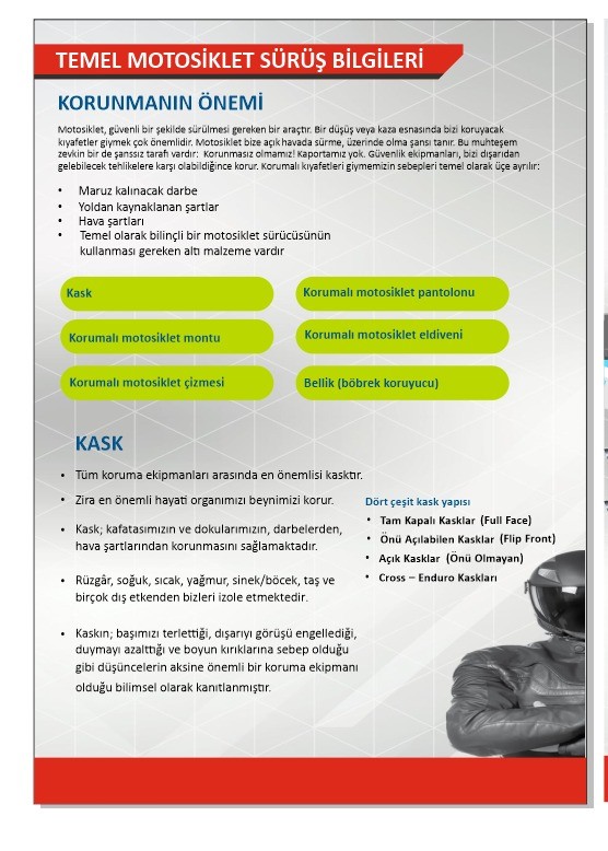 Proje kapsamında, Muğla genelinde mobil trafik eğitim tırında babalar ve çocukları motosiklet sürüş güvenliği konusunda bilgilendirildi. Özellikle kask kullanımının önemi vurgulanırken, sürücülerin güvenlik donanımlarını eksiksiz kullanmalarının, motosiklet kazalarındaki yaralanma ve ölüm oranlarını düşürmede etkili olduğu belirtildi.