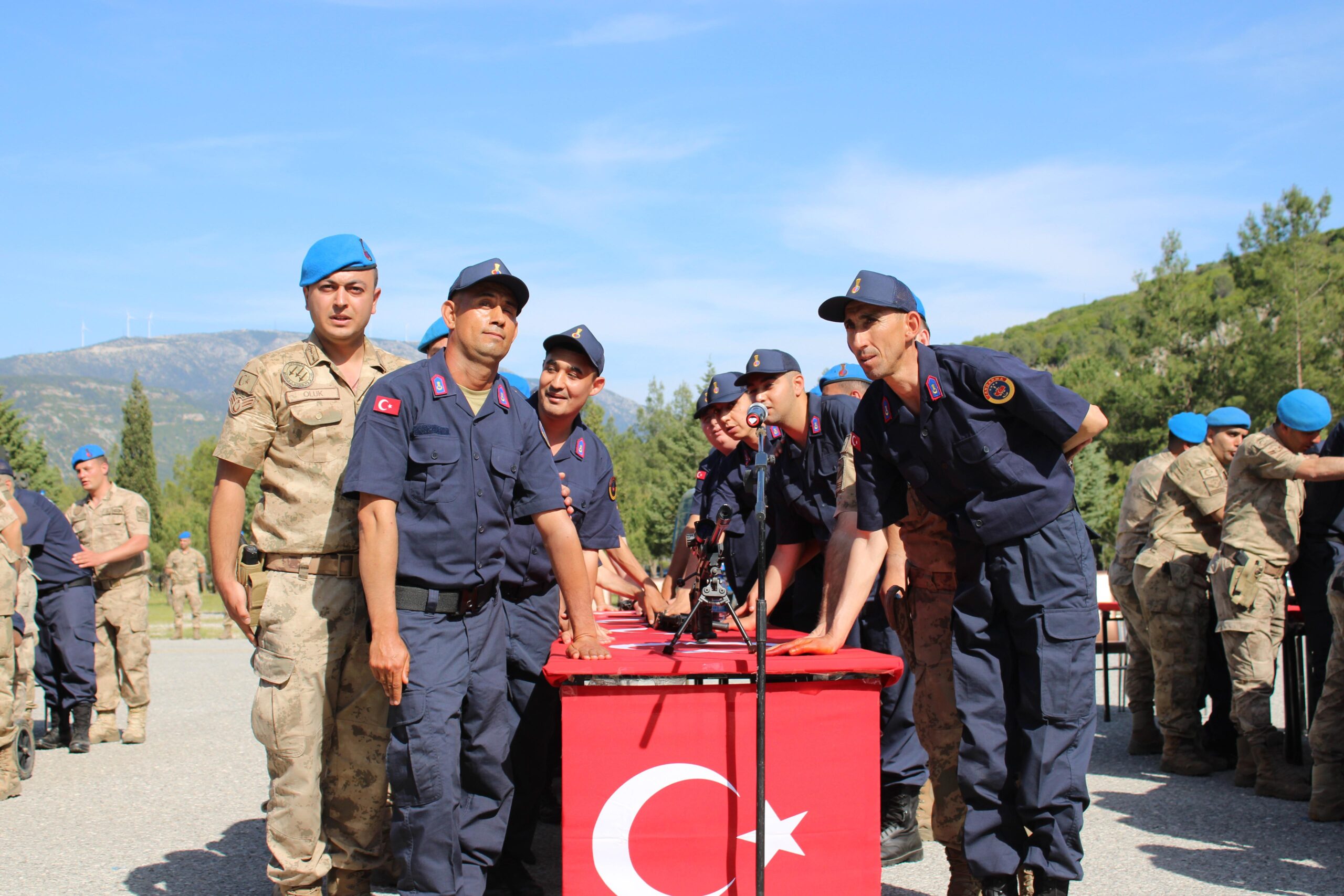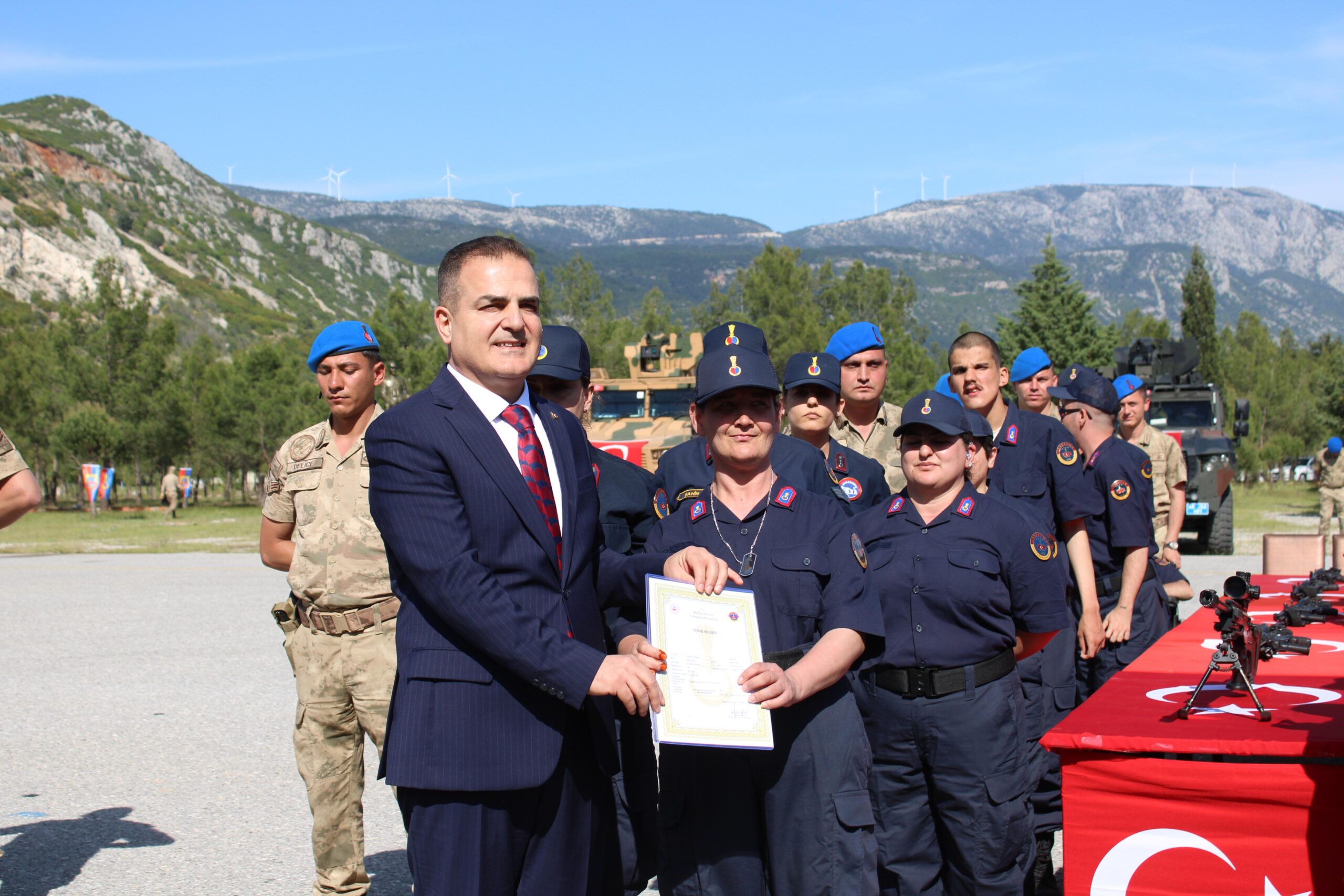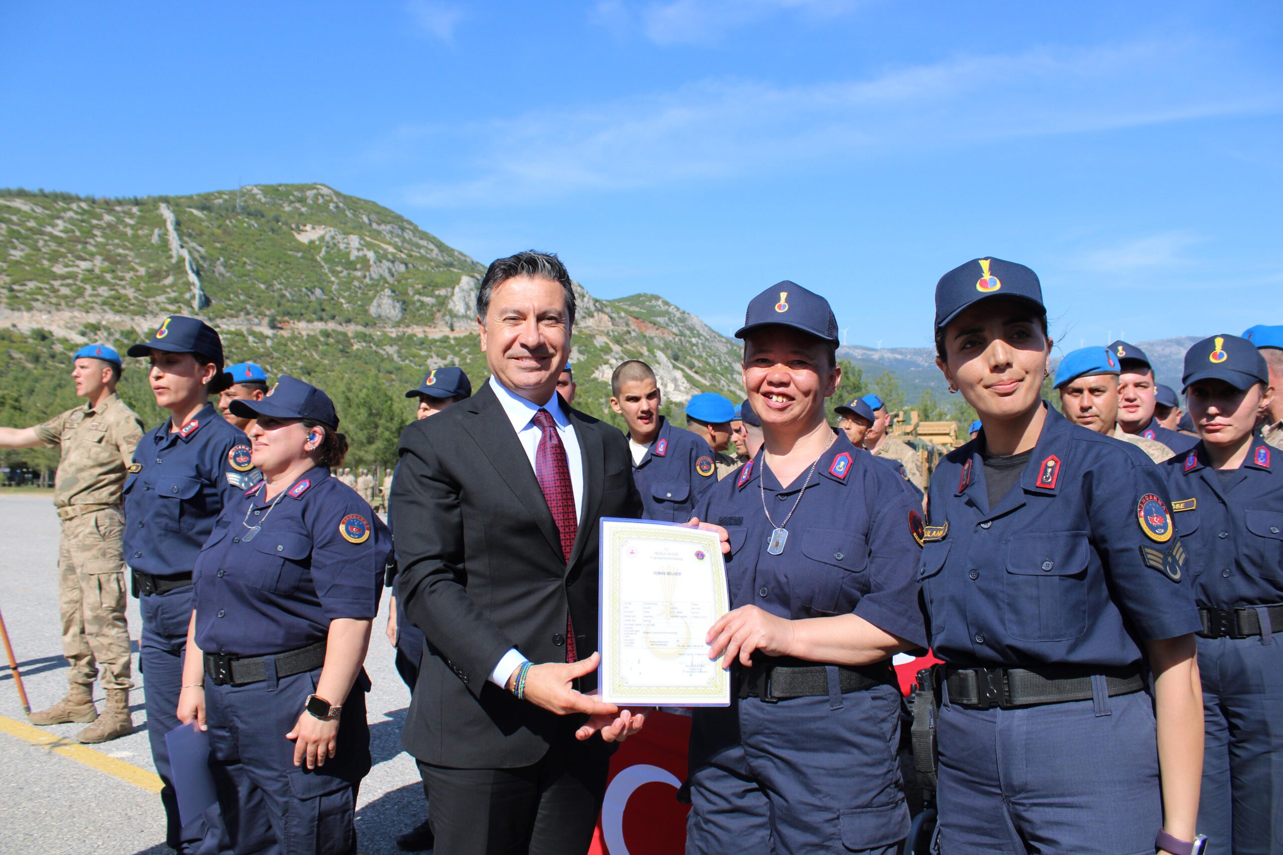 Muğla İl Jandarma Komutanlığı’nda Engelliler Haftası dolayısıyla bedensel ve zihinsel engelli 64 birey için temsili askerlik yemin töreni düzenlendi. Aralarında 12 kızın da bulunduğu engelli bireyler, bir günlüğüne asker olmanın heyecanını yaşadı.