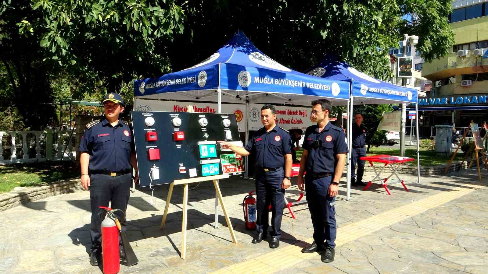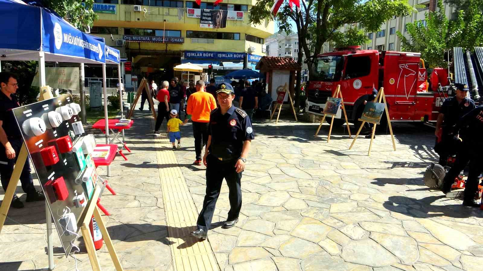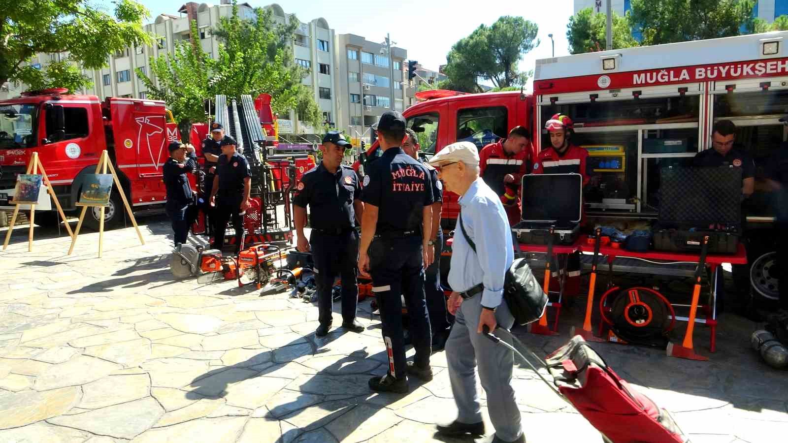 Menteşe Sınırsızlık Meydanı’nda düzenlenen etkinlikte, deprem sismik görüntüleme cihazları, müdahale ekipmanları ve itfaiye araçları halka tanıtıldı. Vatandaşlar, itfaiye hizmetleri konusunda bilinçlenmeye davet edilerek, acil durumlar için alınması gereken önlemler konusunda bilgilendirildi.