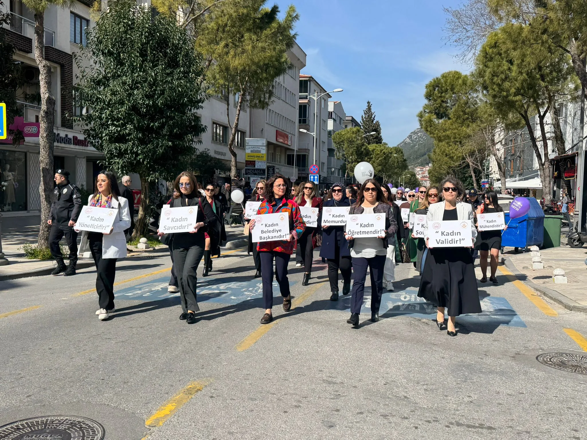 Etkinliğe Muğla Vali Yardımcısı Hüseyin Karameşe, Menteşe Belediye Başkanı Gonca Köksal, Muğla Aile ve Sosyal Hizmetler İl Müdürü Yakup Kütük, Muğla Büyükşehir Belediyesi Kadın ve Aile Hizmetleri Daire Başkanı Özge Demirel, kadın hakları savunucuları ve çok sayıda vatandaş katıldı.