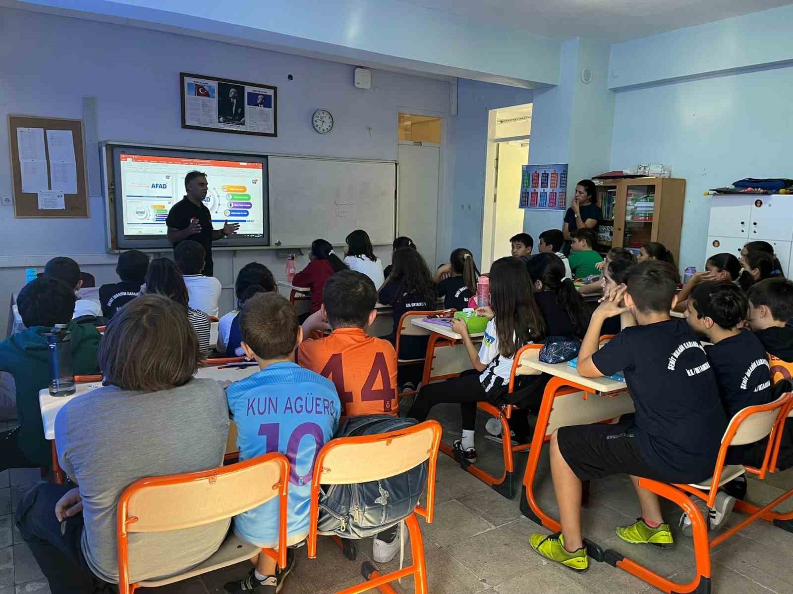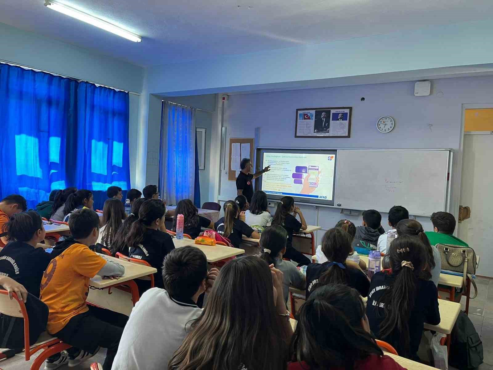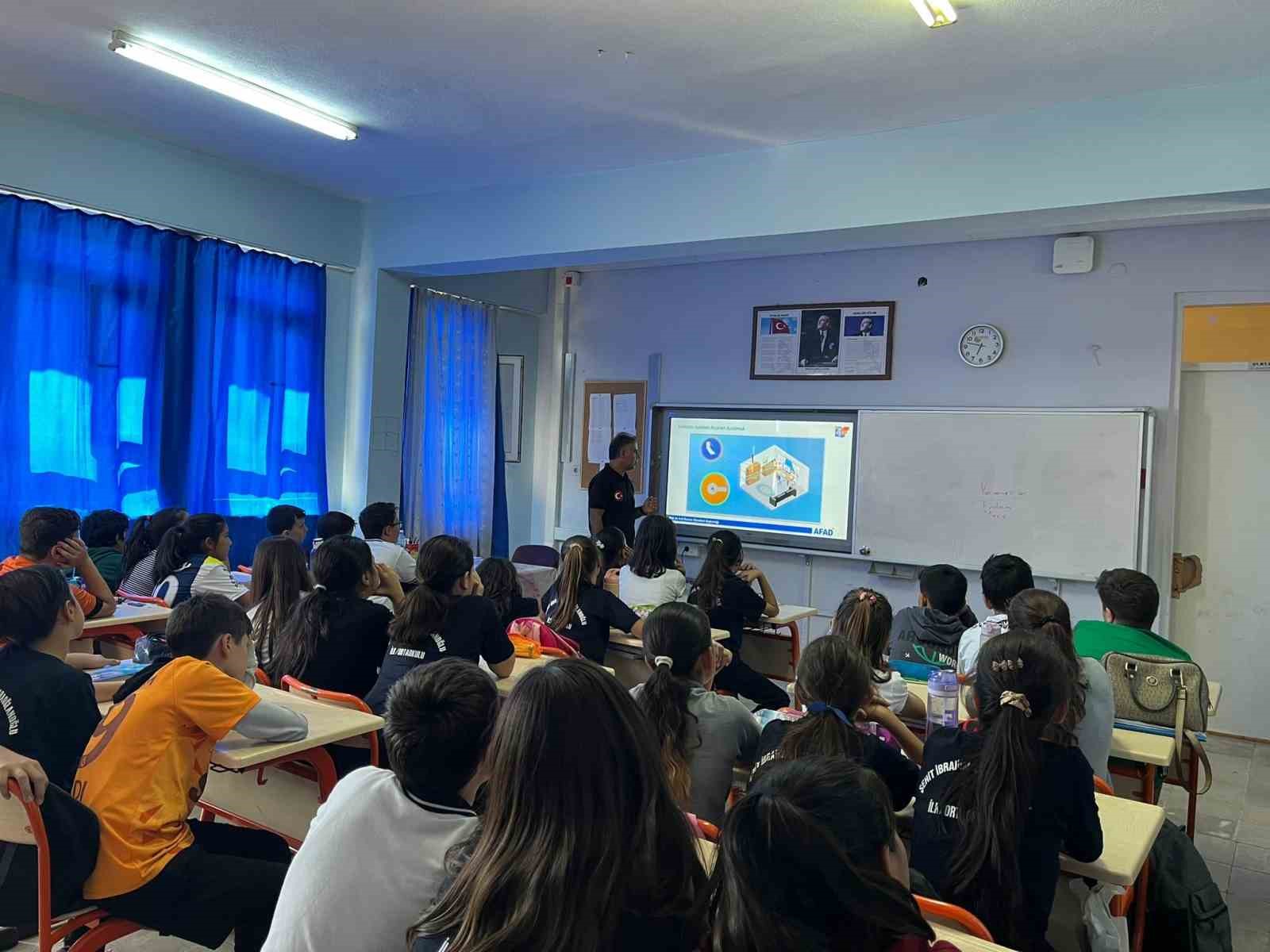 AFAD Muğla eğitmenleri tarafından, Şehit İbrahim Karaoğlanoğlu İlkokulu öğretmen ve öğrencilerine yönelik “Okul Afet Farkındalık Eğitimi” gerçekleştirildi. Eğitimde, afetlere karşı hazırlıklı olmanın önemi vurgulanarak afet öncesi, afet anı ve sonrasındaki doğru davranışlar hakkında detaylı bilgi verildi.