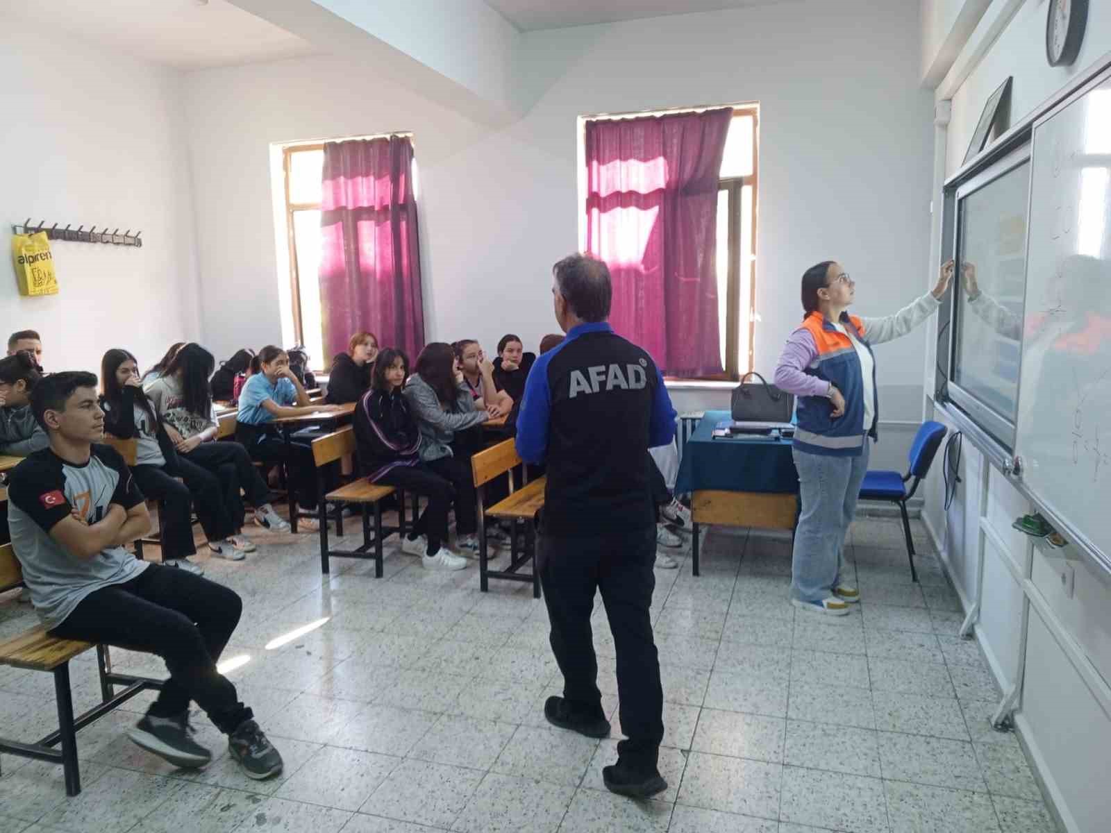 Muğla AFAD (Afet ve Acil Durum Yönetimi Başkanlığı) eğitmenleri tarafından Zübeyde Hanım Mesleki ve Teknik Anadolu Lisesi ile Menteşe Anadolu Lisesi’nde öğretmen ve öğrencilere yönelik “Okul Afet Farkındalık Eğitimi” gerçekleştirildi.