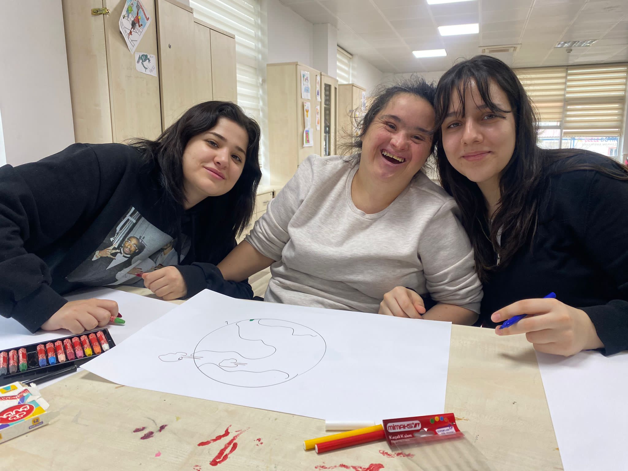 “Sanatla Engelleri Aşıyoruz” temasıyla çalışmalarına devam eden engelli bireyler her hafta farklı bir atölye çalışması ile yeni sanat dallarını öğrenirken onlara eşlik eden gençlik merkezi gönüllü gençleriyle keyifli vakit geçiriyorlar.