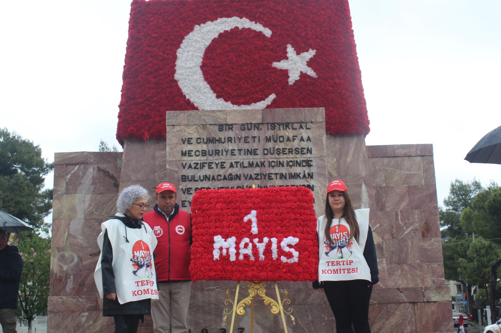 Saygı duruşu ve İstiklal Marşı’nın ardından çelenk sunumu gerçekleştirilerek emekçilerin hak mücadelesine ve dayanışmanın gücüne vurgu yapıldı.