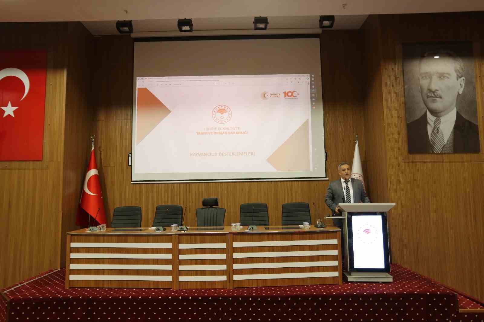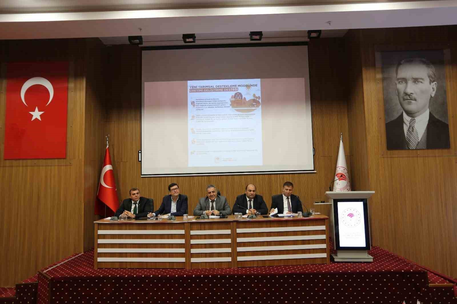 Toplantıda, Hayvancılık Genel Müdür Yardımcısı Melikşah Taşkın ve Tarım Havzaları Daire Başkanı Ergin Toprak, hayvancılık ve bitkisel üretim destekleme modelleri hakkında ayrıntılı sunumlar yaparak, yeni dönemde hayata geçirilecek desteklemeler ve projeler hakkında bilgi verdiler.
