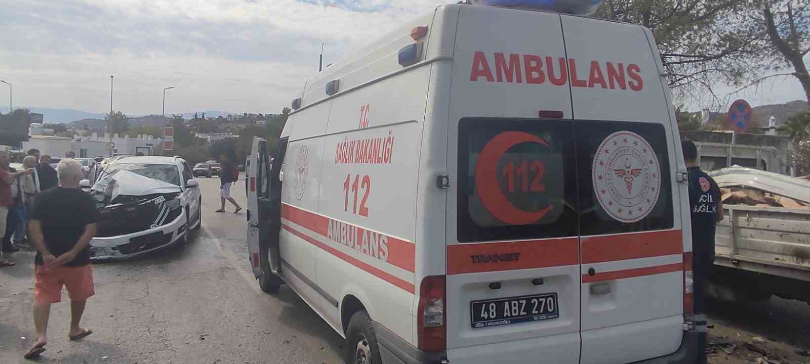 Kaza, Bodrum ilçesi Bitez Mahallesi Atatürk Caddesi’nde meydana geldi. Edinilen bilgiye göre, N.M.K. idaresindeki 48 BH 270 plakalı otomobil, odun satışı için caddede duran 35 ARU 882 plakalı kamyonete arkadan çarptı. Çarpışmanın şiddetiyle kamyonetin kasasında satış yaptığı sırada yere savrulan M.D., otomobil sürücüsü N.M.K. ve otomobilde bulunan M.D. yaralandı. İhbar üzerine bölgeye sağlık ve polis ekipleri sevk edildi. Kısa sürede olay yerine gelen sağlık ekipleri, ilk müdahalenin ardından yaralıları ambulansla Bodrum Devlet Hastanesi’ne kaldırdı.