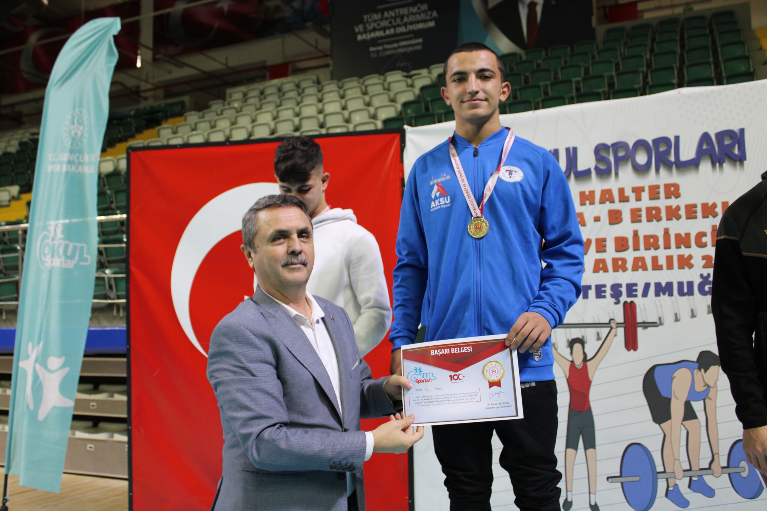 Menteşe Spor Salonu’nda devam eden Halter Genç A-B Erkekler Türkiye Birinciliği müsabakalarında, heyecan doruk noktaya ulaştı. Türkiye’nin dört bir yanından gelen sporcuların mücadele ettiği şampiyonada, Menteşe Spor Lisesi 9’uncu sınıf öğrencisi 15 yaşındaki Tuna Yaraş, totalde 198 kilogram kaldırarak Türkiye Şampiyonu olmayı başardı. Yaraş’a madalyasını, Muğla Gençlik ve Spor İl Müdürü Kazım Açıkbaş takdim etti.