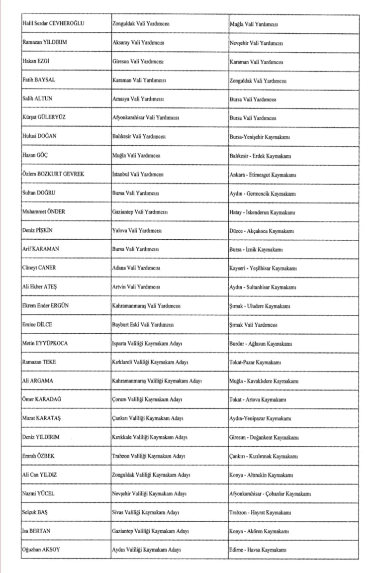 Atamalar, Resmi Gazete’de şu şekilde yer aldı;