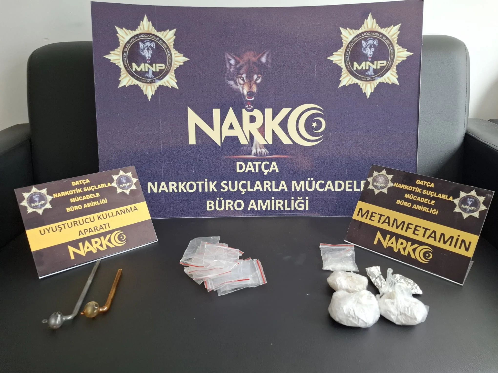 Uyuşturucu madde ticareti yaptığı değerlendirilen bir şahsın Datça ilçesine uyuşturucu getireceği ve satış yapacağı bilgisi üzerine şüphelinin ikametinde arama yapıldı. Aramada 88 gram metamfetamin ele geçirilirken, 2 şüpheli yakalandı.